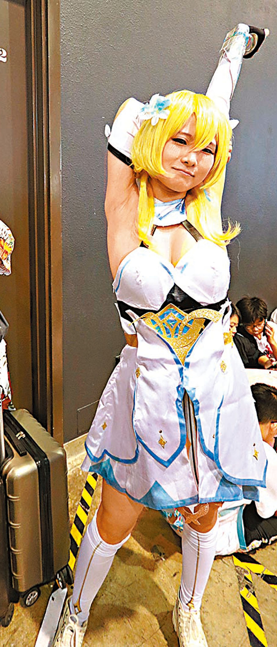 香港文匯報記者在現場還遇見很多拖着行李箱的旅客。特意從深圳前來參加這盛大展覽的Christine,特地打扮成電玩遊戲《原神》的角色,吸引不少遊戲玩家前來合影。
