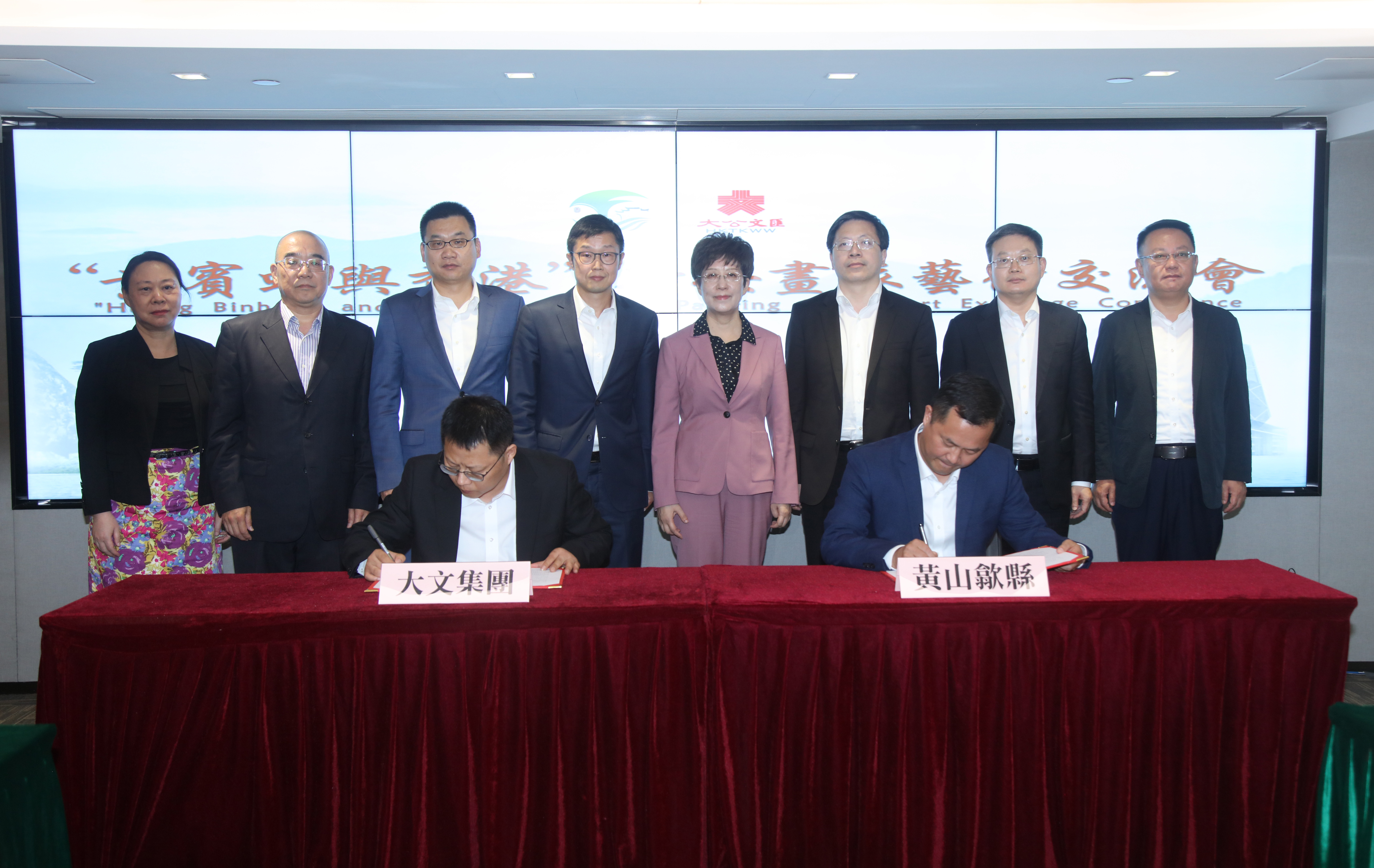 在座談會現場,香港大公文匯傳媒集團與歙縣代表簽訂合作協議,黃山市向香港大公文匯傳媒集團贈送中國工藝美術大師、新安畫派研究會會長、著名書畫藝術家葉善祝畫作《黃山松雲圖》,香港大公文匯傳媒集團向黃山市贈送《黃賓虹畫語錄》和歷史報道資料。