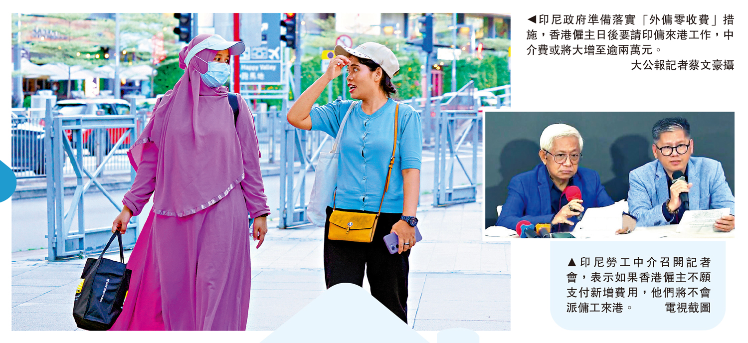 印尼政府擬落實執行的「印傭零收費」措施,勢將加重僱主負擔,有本地外傭中介形容香港基本無還手之力,並擔心印尼一旦開了先例,菲律賓或會仿效。有立法會議員認為,特區政府應積極拓展更多外傭來源地。