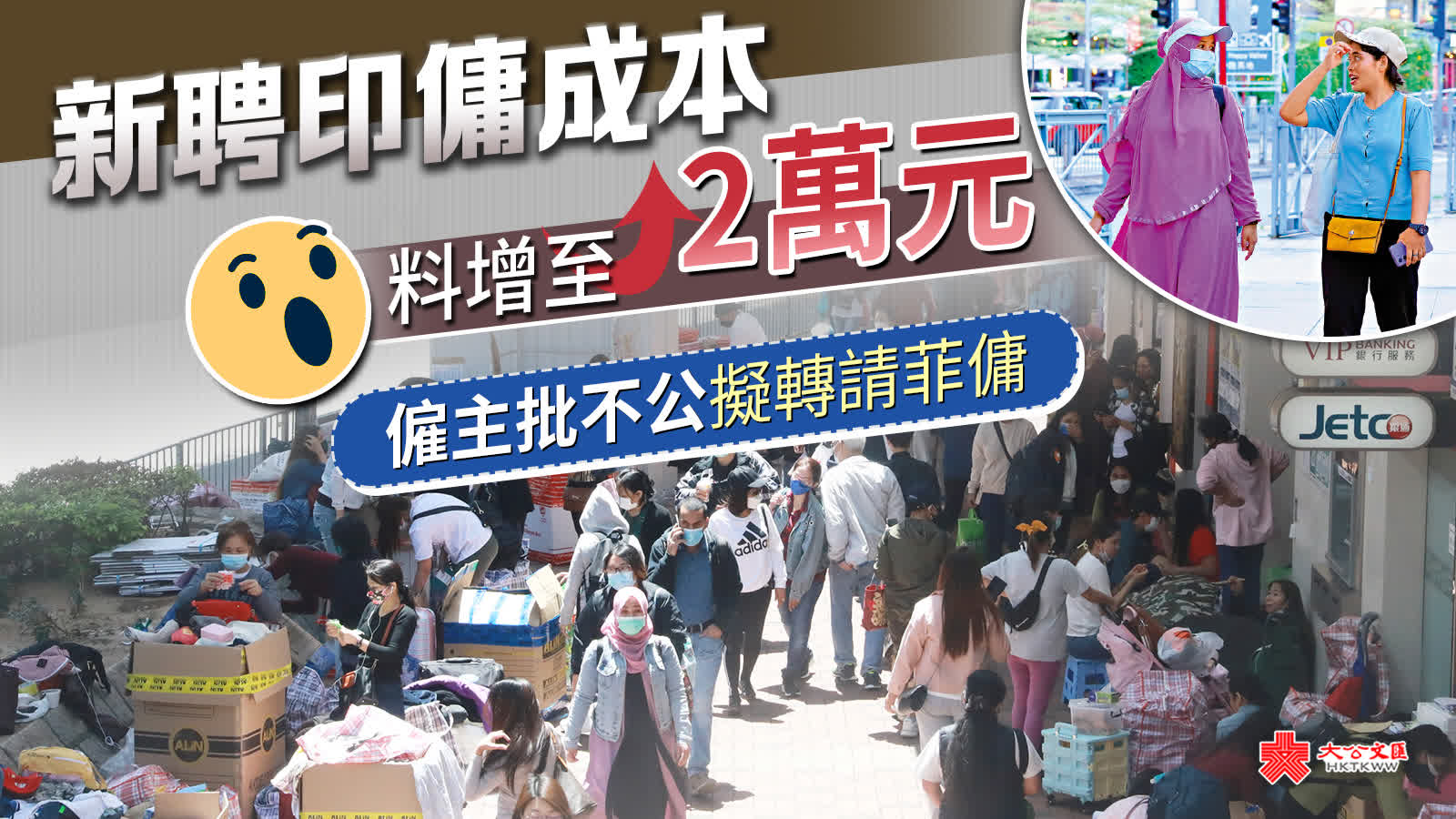 (大公報 記者 曾敏捷、石三原)印尼政府準備落實「外傭零收費」措施,僱主需要承擔印傭的招聘費用,否則可能不讓獲聘外傭來港。有本地僱傭中介公司預料,本港僱主日後聘用印傭的中介費勢將增至逾兩萬元。消息公布後,有原擬聘請印傭的家庭表示,或會考慮選擇收費較低的菲傭或其他地區外傭。