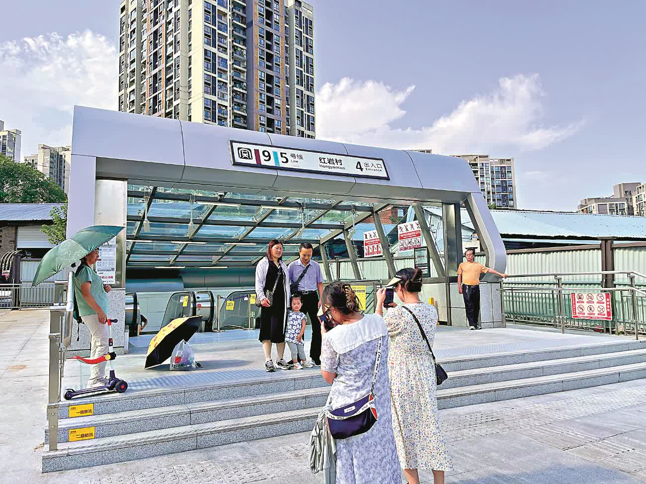 紅岩村站4號口設在高九路六店子社區公園附近,記者體驗從4號口入站,乘坐7段長扶梯,一直到安檢進閘口共耗時8分鐘,通過安檢刷卡入站後,再乘坐一台扶梯才能抵達站台。記者從紅岩村站4號口乘坐7段扶梯進入地鐵站體驗,從另一出口出站,需再乘坐3段更長的自動人行手扶電梯,經紅岩村站2號口出站共耗時13分28秒。