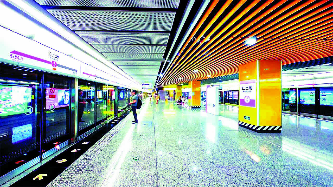 重慶軌道交通紅土地站於2017年正式開通,是6號線與10號線交匯的換乘車站,其最大埋深達94.467米,相當於31層樓的高度。中鐵六局重慶軌道交通10號線相關負責人介紹,「由於埋深大,陡坡施工,材料工具只能靠人工運送,每增加一級,難度要增加一倍。」