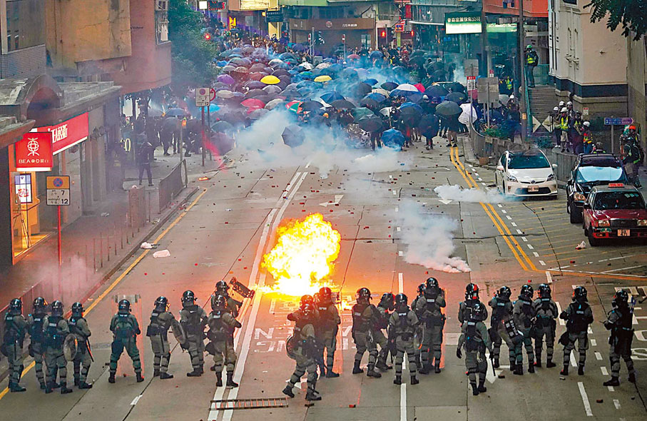 控方昨日在法庭開案陳詞指,2019年11月2日下午,港九多處有公眾集會。4時半,大部分身穿深色衣物的「示威者」聚集在灣仔一帶馬路上,部分人戴防毒面具、護目鏡及手持雨傘等,先後堵塞軒尼詩道、莊士敦道、菲林明道及皇后大道東道路,有人更投擲汽油彈。