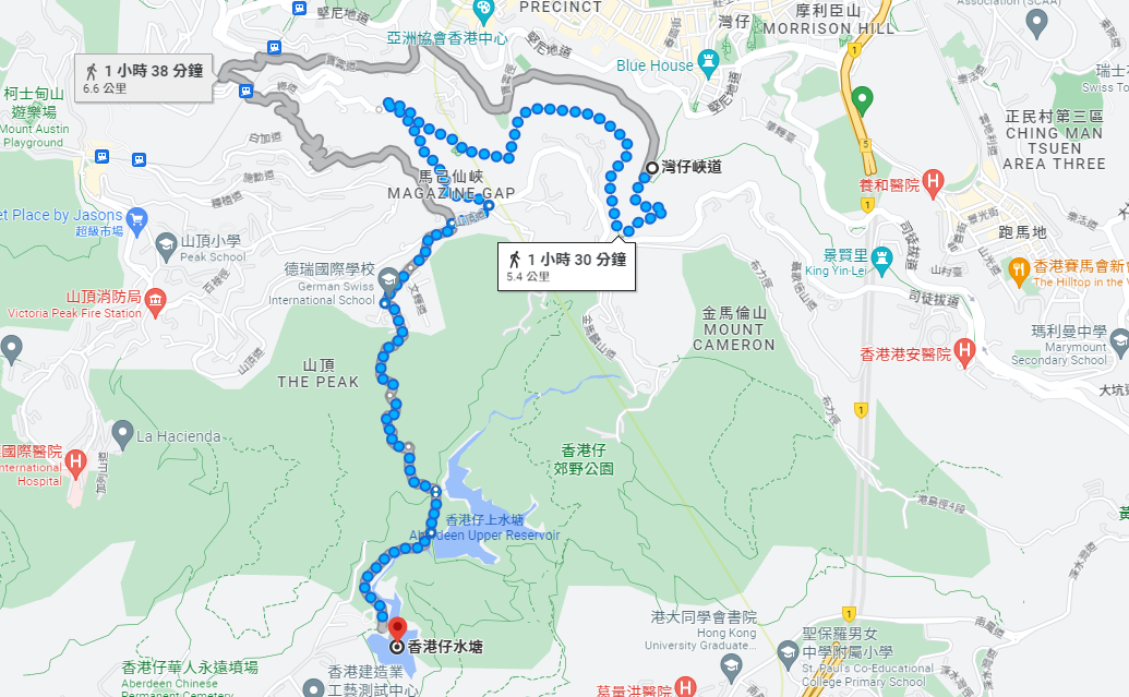 路線:灣仔峽→香港仔水塘道→香港仔水塘