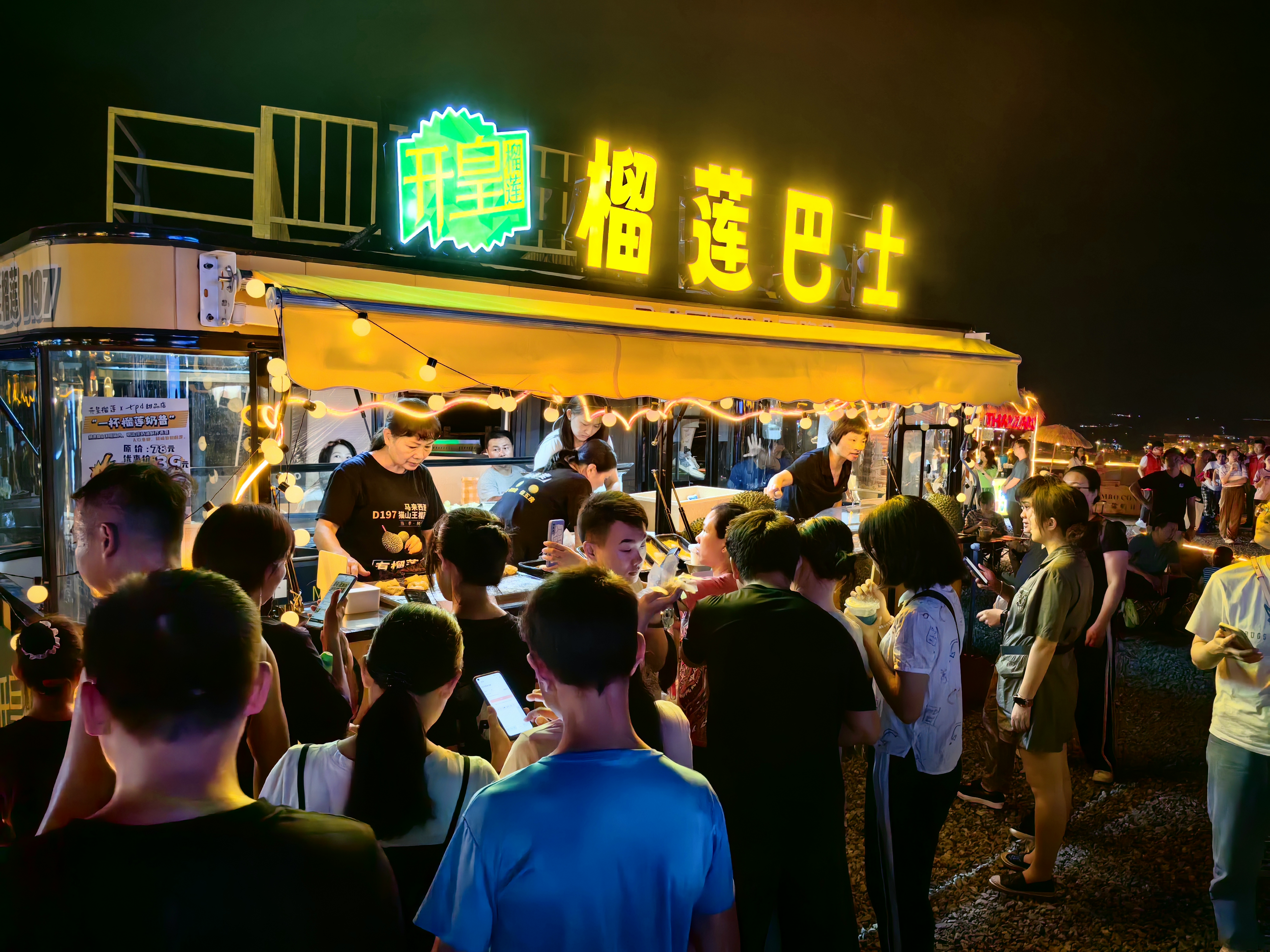 活動現場以「跨境+美食」「跨境+消費」「跨境+文化體驗」為賣點,集中展示了馬來西亞進口貓山王榴槤、俄羅斯進口帝王蟹、美國泰森食品奧爾良雞翅和低脂雞胸肉條、西班牙紅酒、法國洋酒、香港美心月餅以及來自中英街種類多樣的進口零食小吃等世界各地美食,結合夜市露營車尾箱集市,營造獨特的跨境產品現場體驗氛圍。