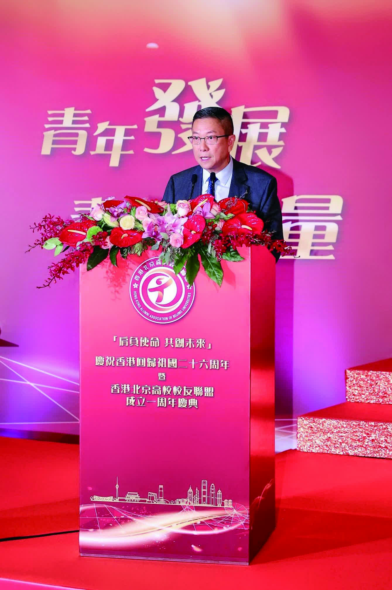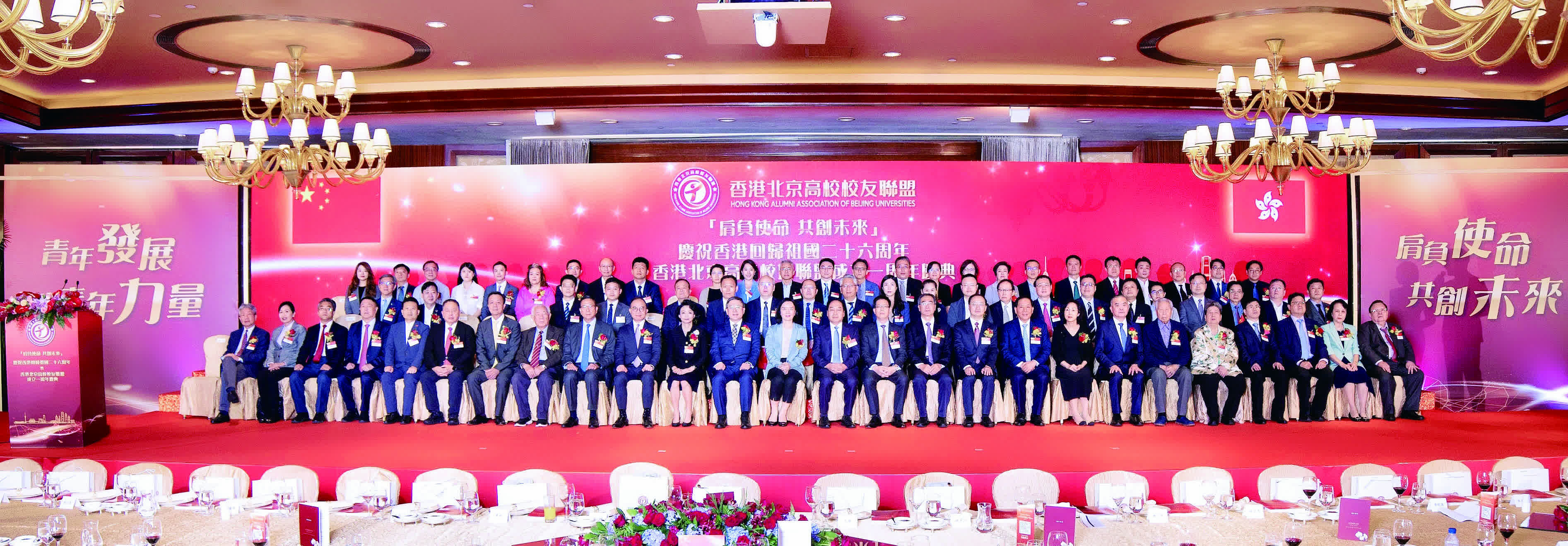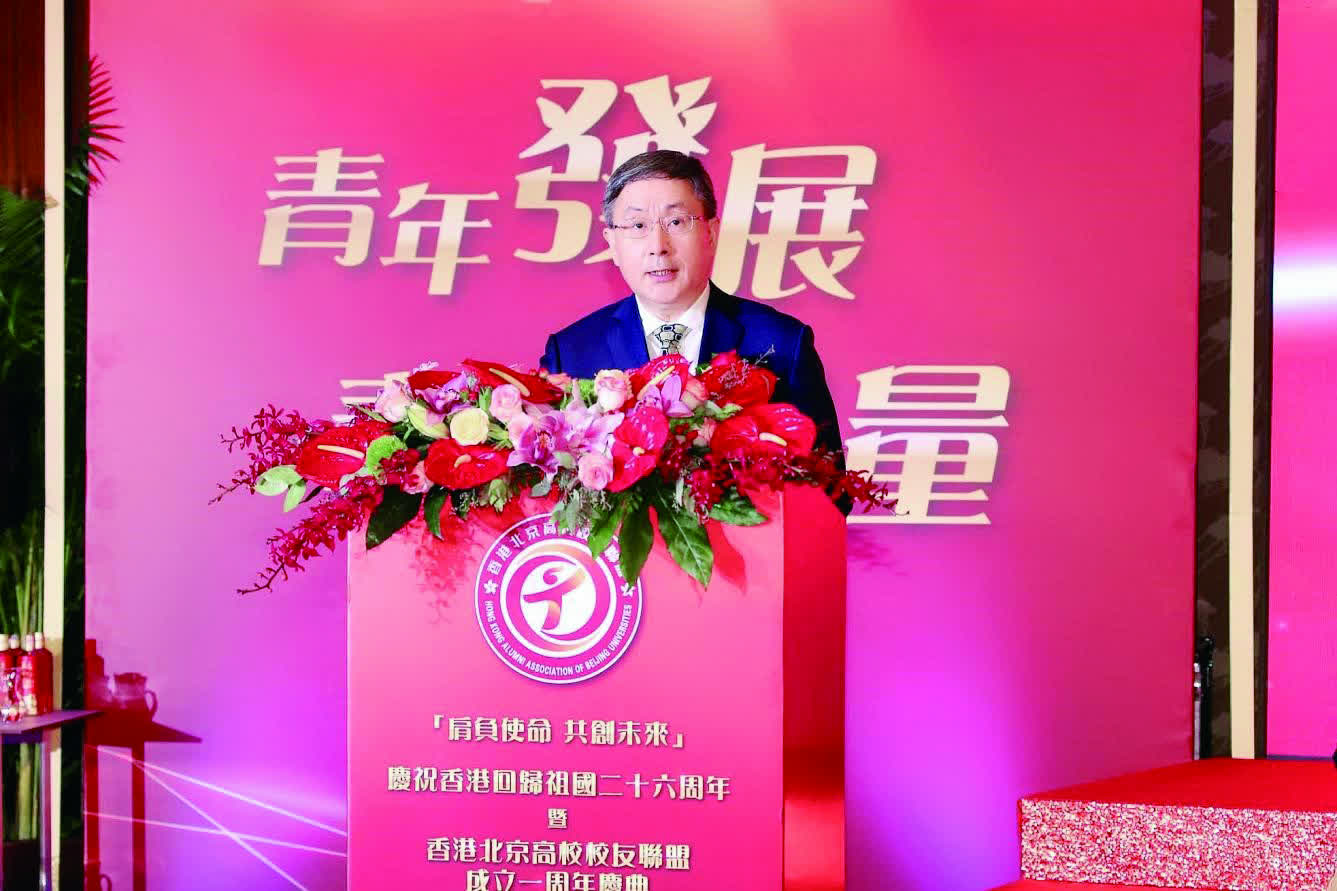 7月27日,由香港北京高校校友聯盟舉辦的「肩負使命 共創未來」慶祝香港回歸祖國二十六周年暨香港北京高校校友聯盟成立一周年慶典活動在港麗酒店大會堂成功舉辦。中央政府駐港聯絡辦公室副主任盧新寧、香港特別行政區政府政務司副司長卓永興、外交部駐港公署國際部主任王琪、香港特別行政區政府政制及內地事務局局長曾國衛、北京市委統戰部常務副部長周開讓和清華大學校務委員會副主任姜勝耀等蒞臨主禮。社會各界友好團體及來自清華大學、北京大學、中國人民大學、中國政法大學、北京師範大學、北京科技大學、中央財經大學、香港浸會大學、香港大學,還有美國、英國、加拿大等30多所京港和海外高校在港校友等近400人參加現場活動。