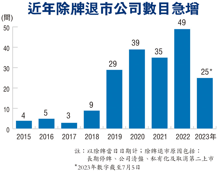 標普全面評級企業評級部董事廖美珊指出,退市通常是因為業務嚴重萎縮,公司不具持續經營能力,屬經營面問題,一旦被除牌,便會影響到公司的債務重組,除透明度下降,投資者亦會失去信心,更重要的是,債務重組方案可能性會降低,最惡劣情況下,甚至可能出現清盤的局面。換言之,失去了上市地位,相關的財困內房股更難獲救。