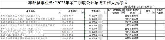 據縱覽新聞報道,8月3日上午,豐都縣人民政府官網第二次發布了筆試成績及進入面試人員名單,名單顯示8名考生因違紀取消成績。8月3日下午,豐都縣人社局也向記者證實,確實有考生存在作弊行為,已經移交給公安機關,正在進行處理。