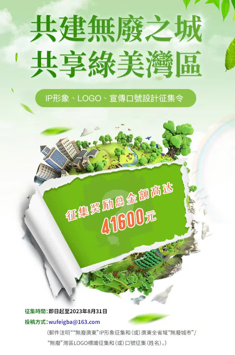 為推廣「無廢」文化,傳播「無廢」理念,展示廣東省和大灣區「無廢城市」建設特色,現多渠道面向社會,開展「無廢廣東」IP形象與IP名稱、廣東全省域「無廢城市」和「無廢」灣區LOGO標識和宣傳口號公開徵集活動。