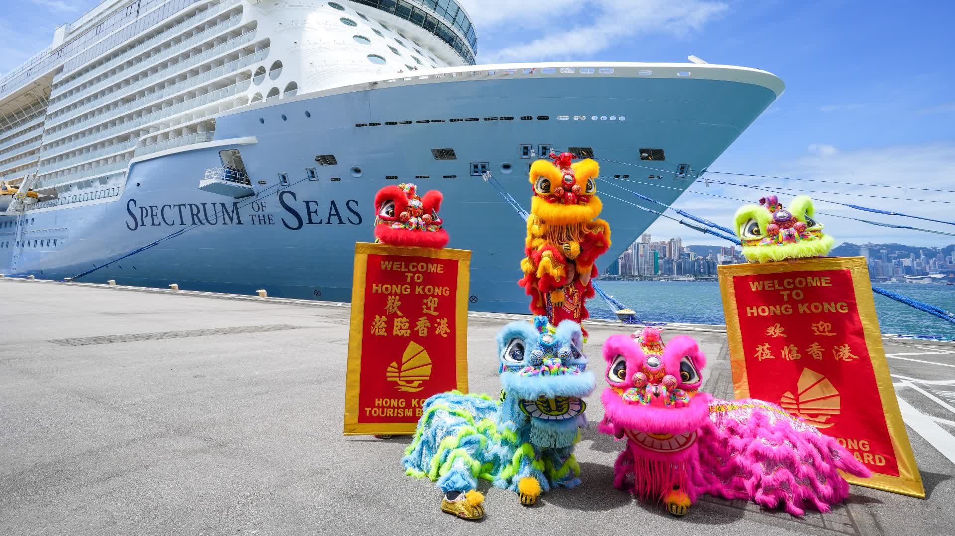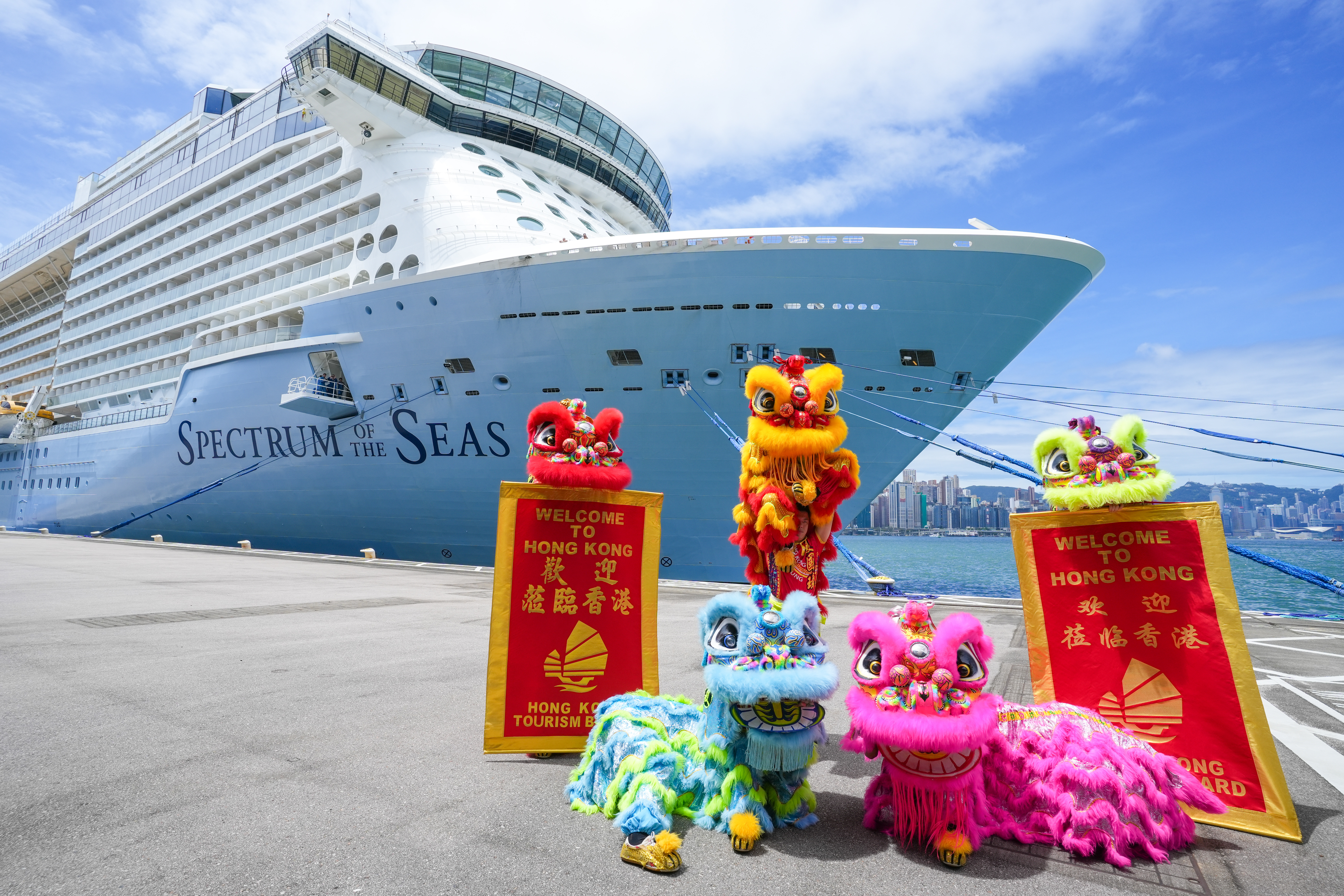 大公文匯全媒體報道,皇家加勒比國際遊輪旗下「海洋光譜號」將在疫後首次重返香港,並落實將於2024年再次以香港作為母港。旅發局今日(4日)特別在啟德郵輪碼頭舉行歡迎儀式,以生動活潑醒獅及熱鬧鑼鼓表演助興,迎接「海洋光譜號」回歸,並向抵港旅客派發小禮物。