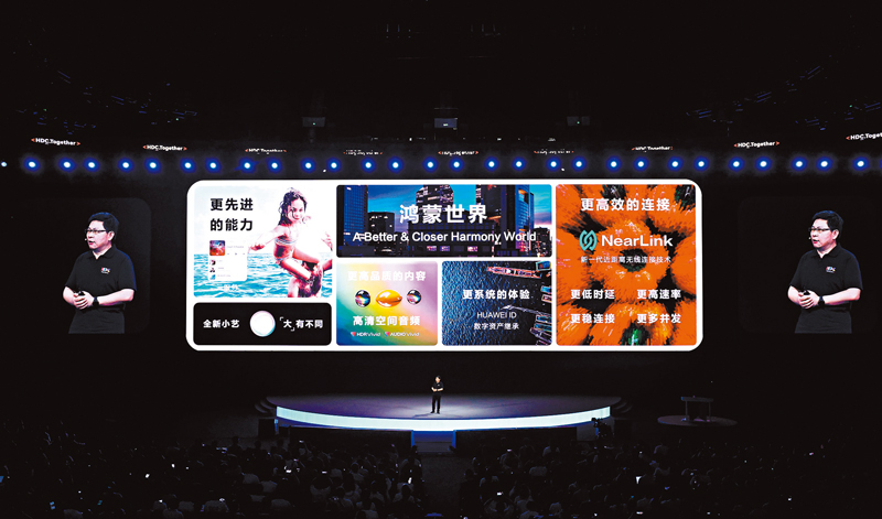 (香港文匯報 記者 郭若溪)2023年華為開發者大會昨天開幕,並發布全新的鴻蒙操作系統HarmonyOS 4。公司表示,該操作系統將獲得AI(人工智能)大模型賦能,在智慧交互、高效生產力和個性化服務三個方向持續增強。華為常務董事、終端BG CEO、智能汽車解決方案BU CEO余承東在會上表示,鴻蒙生態走過了「艱難的四年」,華為手機已走在回歸的道路上。