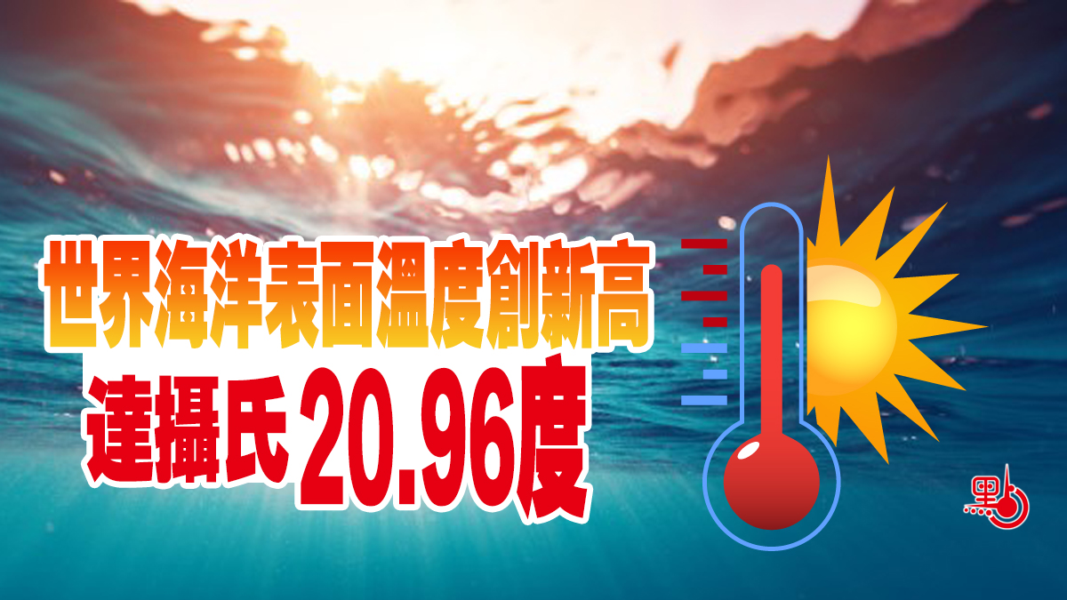 該署指出,海洋表面平均溫度於今年4月4日創下攝氏21.06度的新高紀錄,前高紀錄是2016年3月的攝氏21.01度。今年8月1日,海洋平均溫度,升至攝氏21.03度。