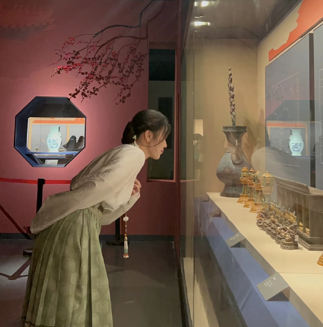「論馬面裙和博物館的適配度。」山東淄博的高小姐在暑期和好朋友一起來洛陽旅行,「第一次嘗試妝造出行,在都是公主娘娘的洛陽一點兒都不尷尬。」高小姐說,自己雖然很喜歡中國傳統服飾,但總覺得平時穿太「顯眼」,這次趁着旅行就和好朋友嘗試一下,沒想到效果出奇地好。「來到這裏,真的就好像來到大唐的感覺,」她還表示,「可能是心理作用,穿上傳統服飾感覺逛博物館的時候,展覽的文物都活起來了,好像能夠對得上話了。」