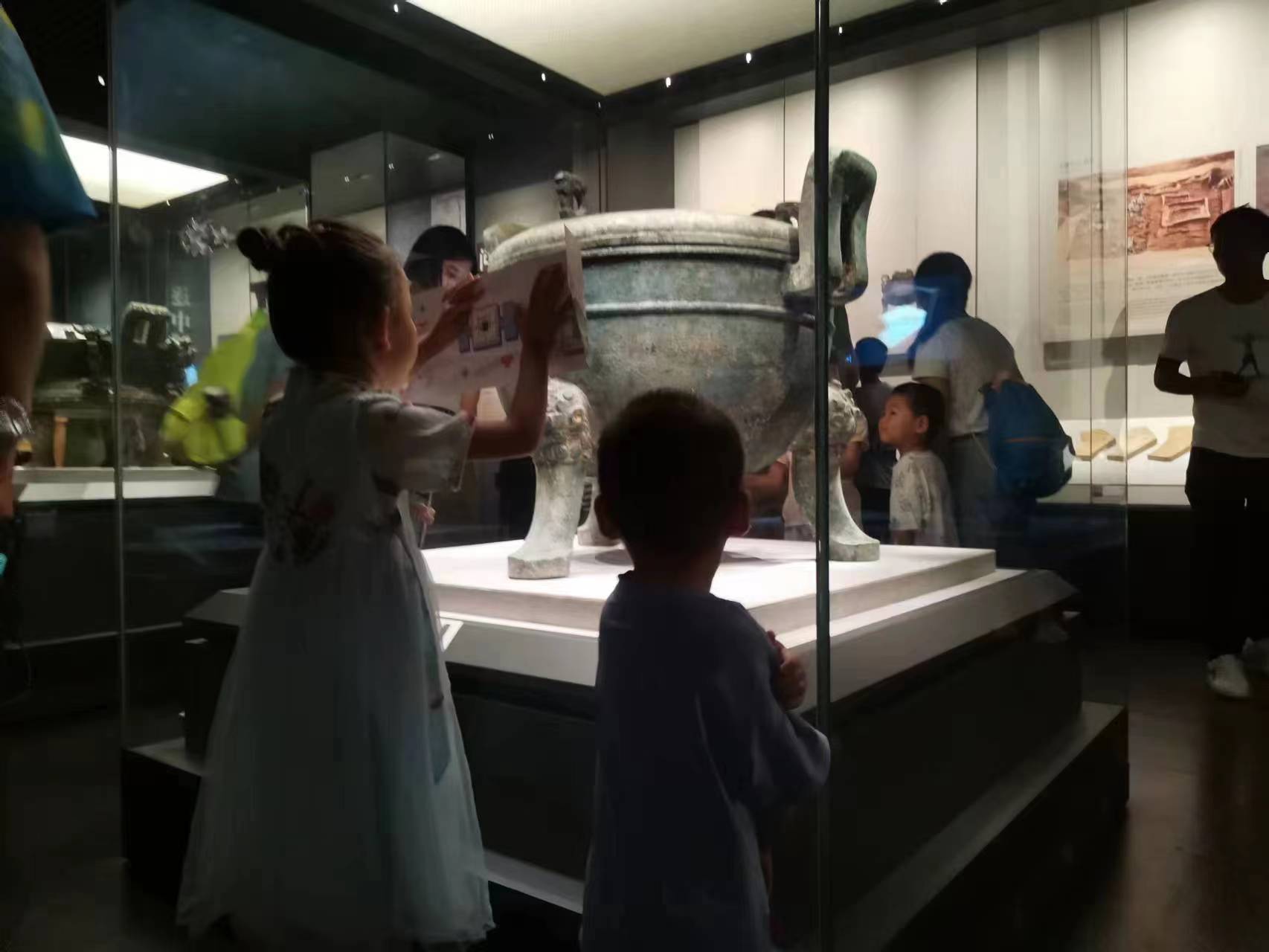 記者了解到,不少家長選擇帶孩子「打卡」博物館。「現在的旅行已經不是上車睡覺下車拍照了,而是要能夠真正地去體驗一些在家中在學校無法體驗的東西。」來自西安的米粒媽媽在這個暑假選擇帶兩個孩子來到河南博物院,「這次來河南,我們就是奔着河南博物院來的,我提前做好攻略,在網上預約了門票,並且找好了資深講解。」