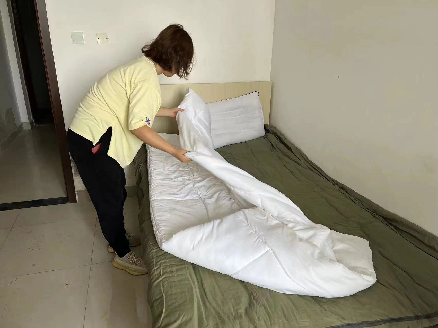 「我們這個樓是公租房小區,在疫情期間變成了集中隔離點,所以房間裏的設施設備都是齊全的,有床、有空調、有熱水器。唯獨就缺少了一些床上用品,這次運送的中央救災物資是輕薄的毛巾被,也是解了燃眉之急。」陳瑞說,為了確保突發情況能夠從容應對,每個樓棟都設立了醫療保健站,配備一醫一護和基本的急救、外傷藥品。一般小病在保健站內解決,站內解決不了,通過120急救車啟動轉診程序。