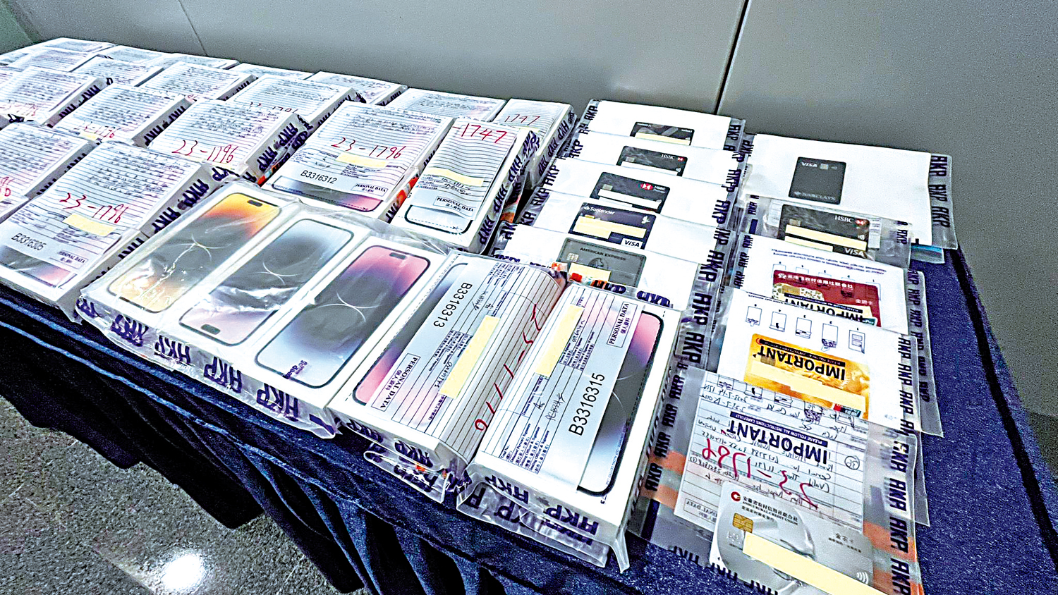 灣仔警區刑事調查隊高級督察胡銘雄昨日交代案情時表示,犯罪集團主要以盜取的信用卡,在銅鑼灣一間大型電子產品連鎖店消費,再套現獲利,亦有跨境犯罪集團用內地銀行發行的扣賬卡在店內購物,而扣賬卡內的款項全為騙案所得的騙款;行動中檢獲接近50部iPhone、一定數量的信用卡及內地扣賬卡。