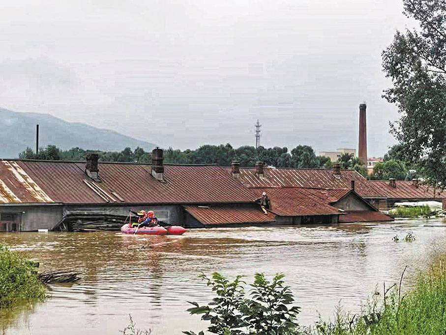 「我們在尚志市一面坡鎮,道路上的水幾乎沒到腰,旁邊農家院的大鐵門被淹沒了一半。」哈爾濱紅十字藍天救援隊隊員孫天卓在舟艇組裝測試的空檔傳回的視頻中說。香港文匯報記者從視頻裏看到,舟艇極速掠過的村鎮道路兩旁,有些倉房就剩房頂露在水面上,還有很多平房水已經從窗戶淹了進去。一些被困群眾集中在地勢較高的住戶家中,等待救援人員的到來。