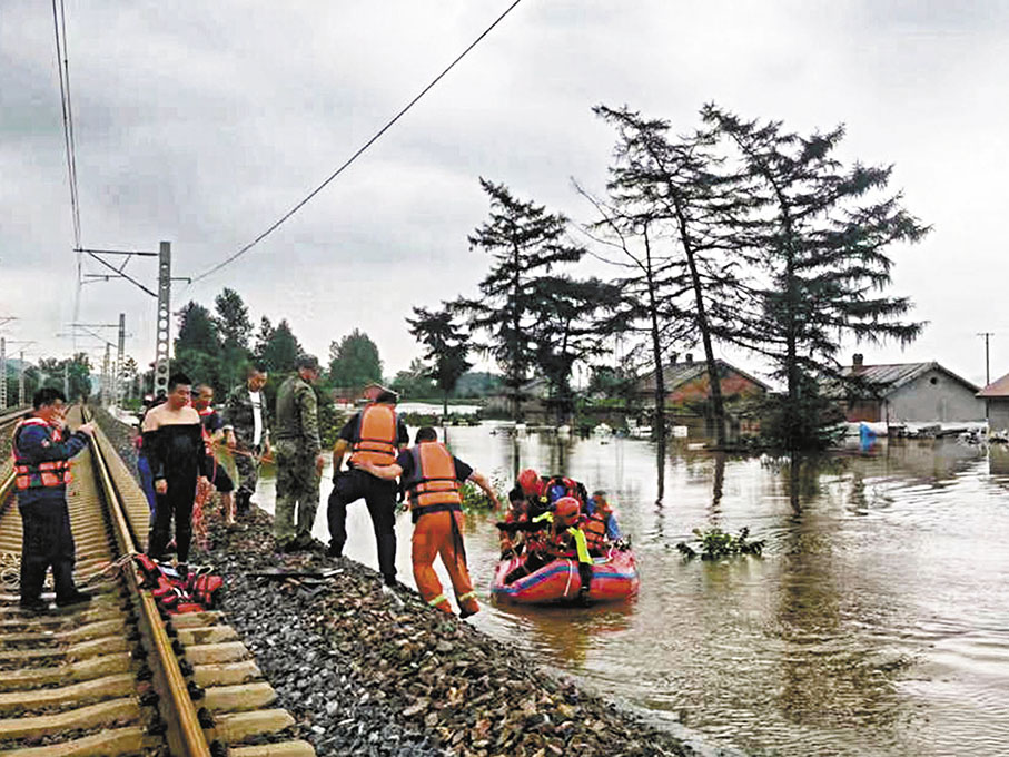 哈爾濱紅十字藍天救援隊接哈爾濱市應急管理局調派,二十餘名救援隊員前往因強降雨天氣致多人被困的尚志市帽兒山鎮、葦河鎮、一面坡鎮等地,對被洪水圍困的村民進行疏散。