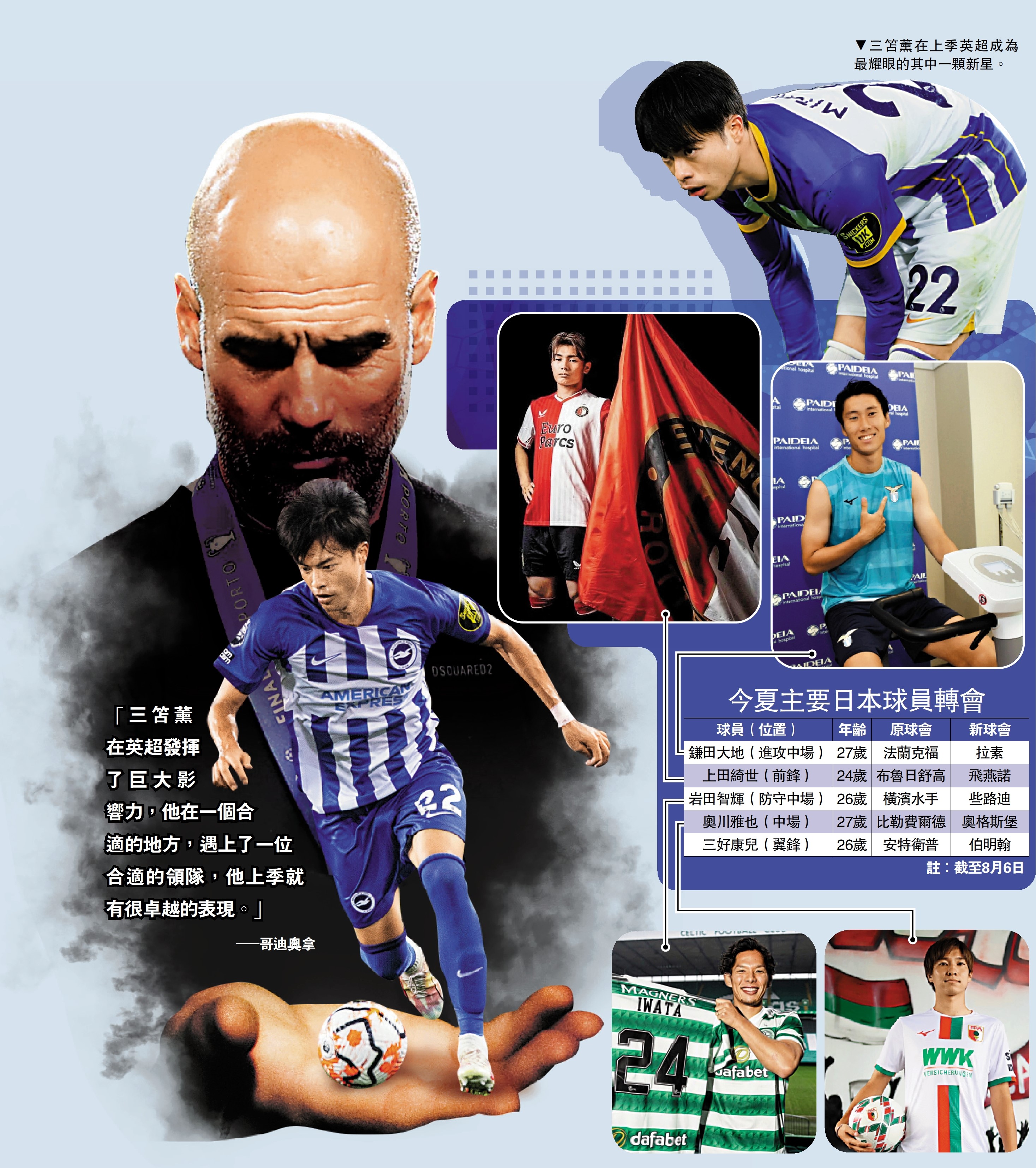 三笘薰上季英超上陣33場、射入7球,創日本球員單季英超入球紀錄,並於足總盃淘汰衛冕的利物浦之役,射入一記技驚四座的精彩入球,「新亞洲天王」之名亦不脛而走。若曼城收購三笘薰不果的話,將退而求其次將目標放到水晶宮的米高奧利斯和法甲雷恩的謝利美杜古之上。