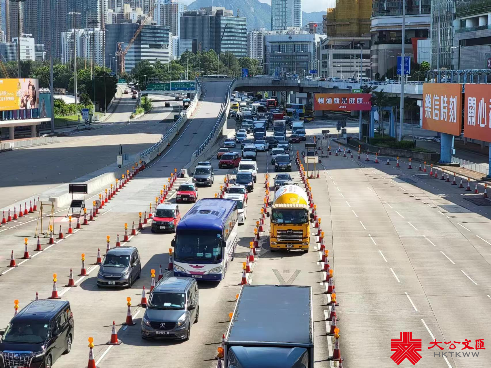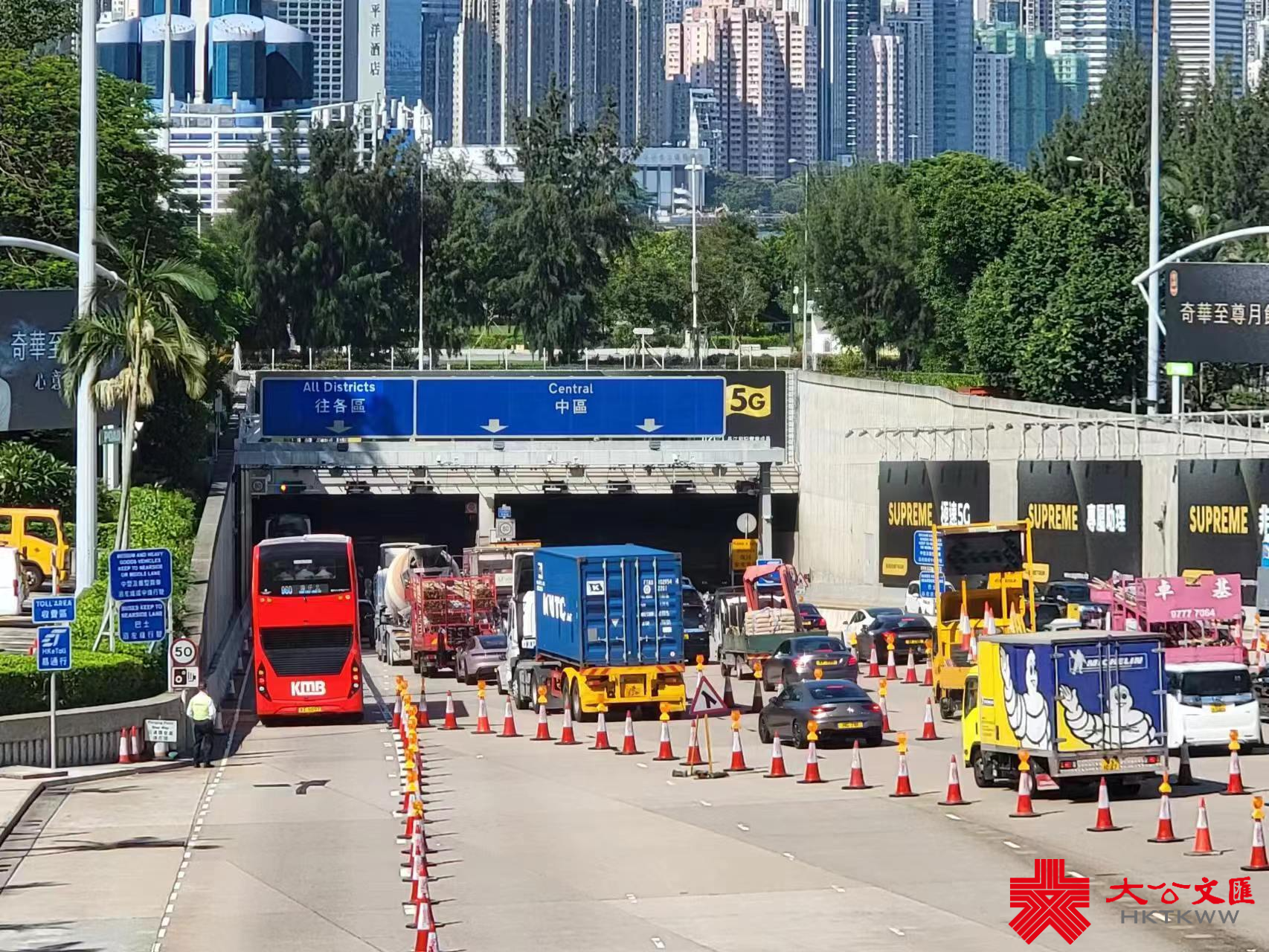 大公文匯全媒體記者今日8時30分到達位西區海底隧道入口現場,西隧往九龍方向減至4線行車,汽車通過舊收費亭大致暢順,可是受多宗交通意外影響,西隧入口出現長長的車龍,車龍沿着私家車使用的3條行車線伸延至連翔道天橋底,過海巴士在進入西隧入口時亦有擠塞,車龍到10時15分才開始散去。