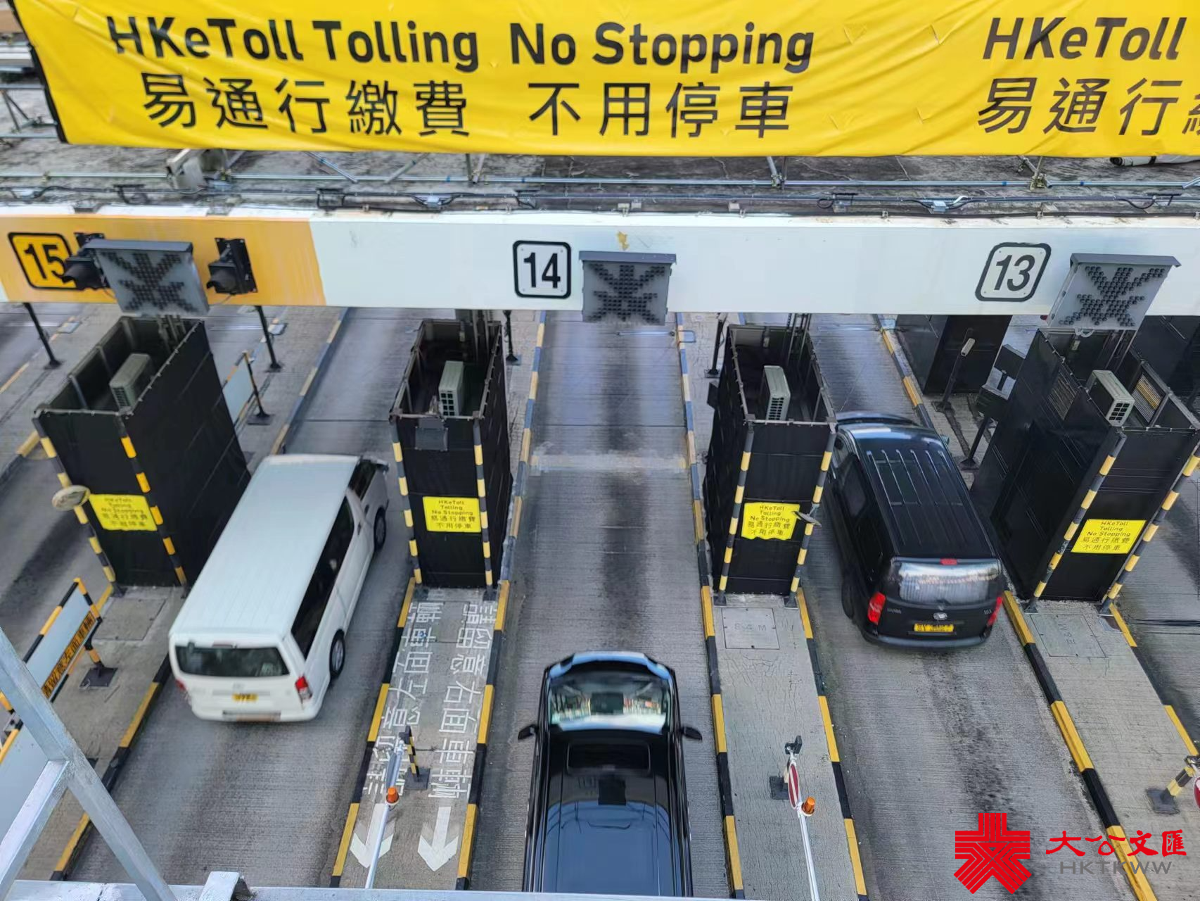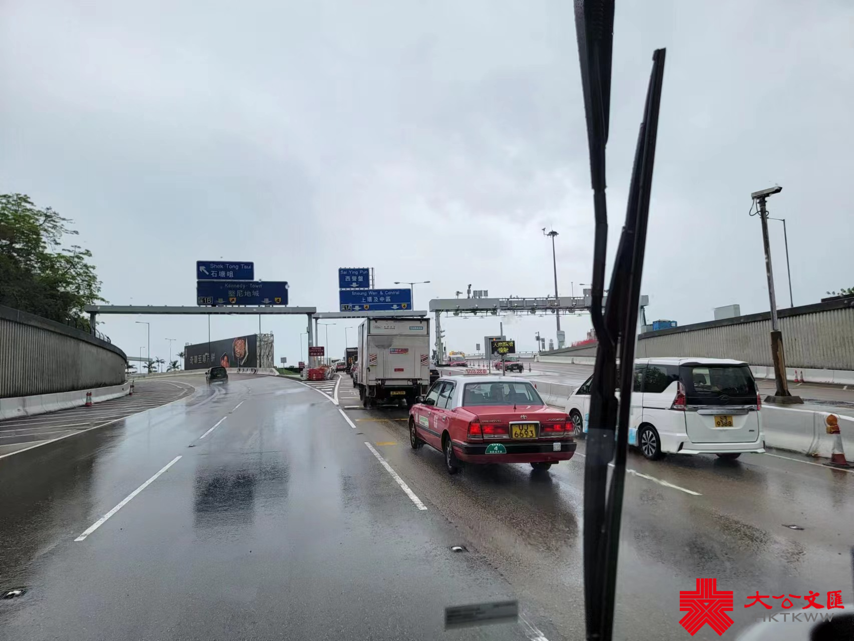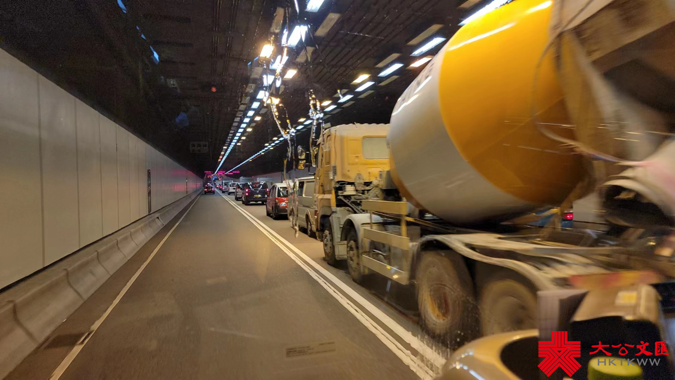 記者隨後由轉乘站乘巴士過海,只見隧道內仍然多車,部分大型車輛沿中線行駛,巴士使用的左線則維持暢順,期間更有私家車在雙白線的情況下截線至左線,引來同車的巴士司機的不滿。