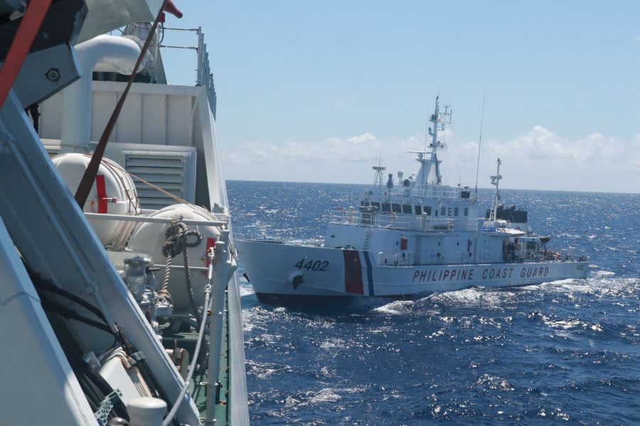 最近,獲悉菲方將對仁愛礁開展新一輪運補後,中方在多個層級、利用多種渠道向菲方提出交涉,要求菲方不得擅自派船隻闖入仁愛礁,不得向「坐灘」軍艦運送用於大規模維修加固的建築物資。8月5日,菲律賓不顧中方一再勸阻和警告,仍執意派出2艘船隻擅自闖入仁愛礁海域,違反《南海各方行為宣言》,企圖向非法「坐灘」軍艦運送用於維修加固的建築物資。中國海警船依法予以攔阻,並採取了警示性執法措施,在多次喊話警告無效的情況下,為避免直接攔阻出現碰撞,使用水炮實施警示,現場操作專業、克制,無可非議。