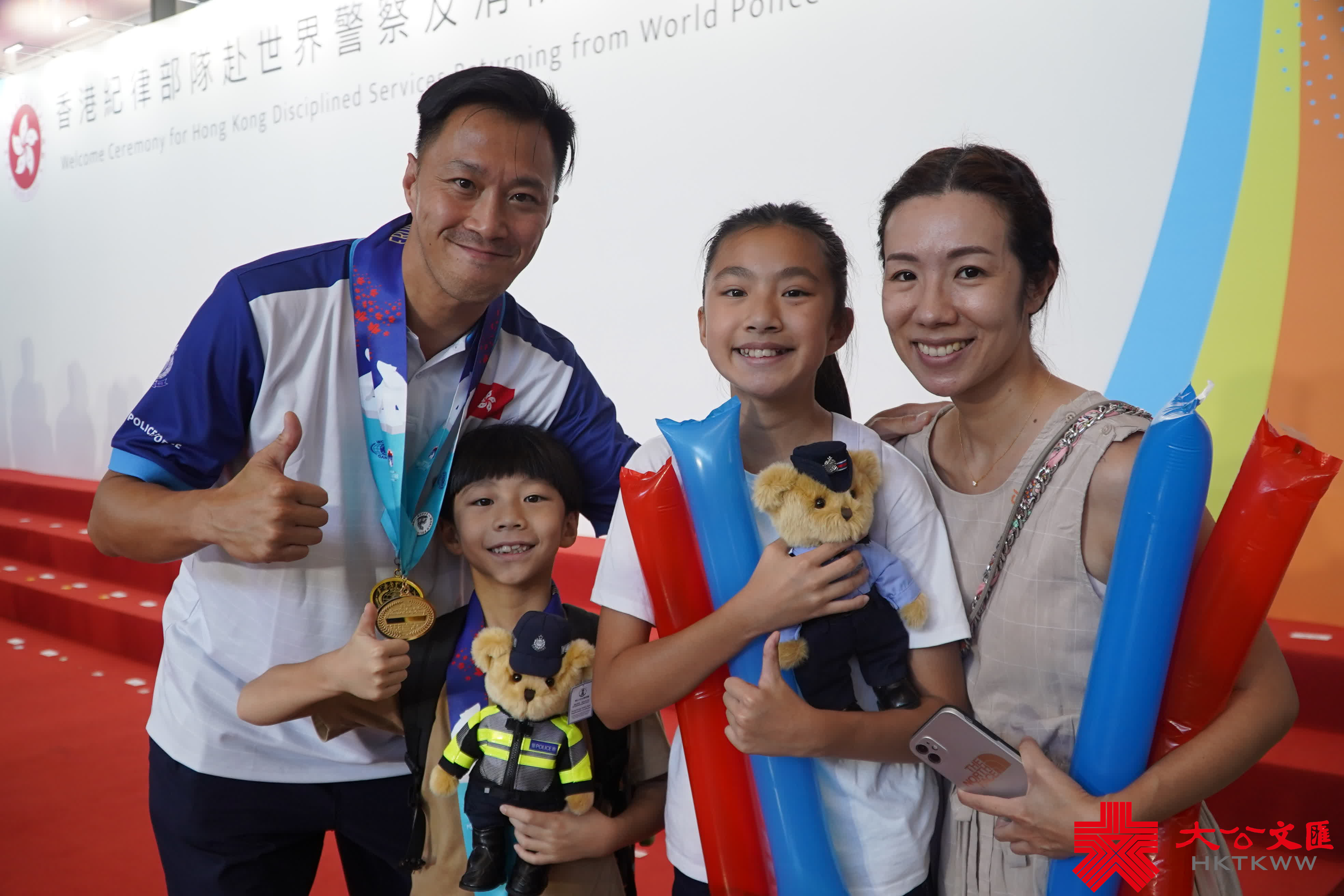 (大公文匯全媒體 記者 李九歌)香港警務處、海關、懲教署和消防處早前派出代表團到加拿大參與2023年世界警察及消防運動會,經過10日賽事,代表團共取得89面金牌、80面銀牌和69面銅牌,成績是歷屆之冠。部分成員今日(8日)下午返港,特區政府在香港國際機場舉行儀式,迎接代表團凱旋歸來。
