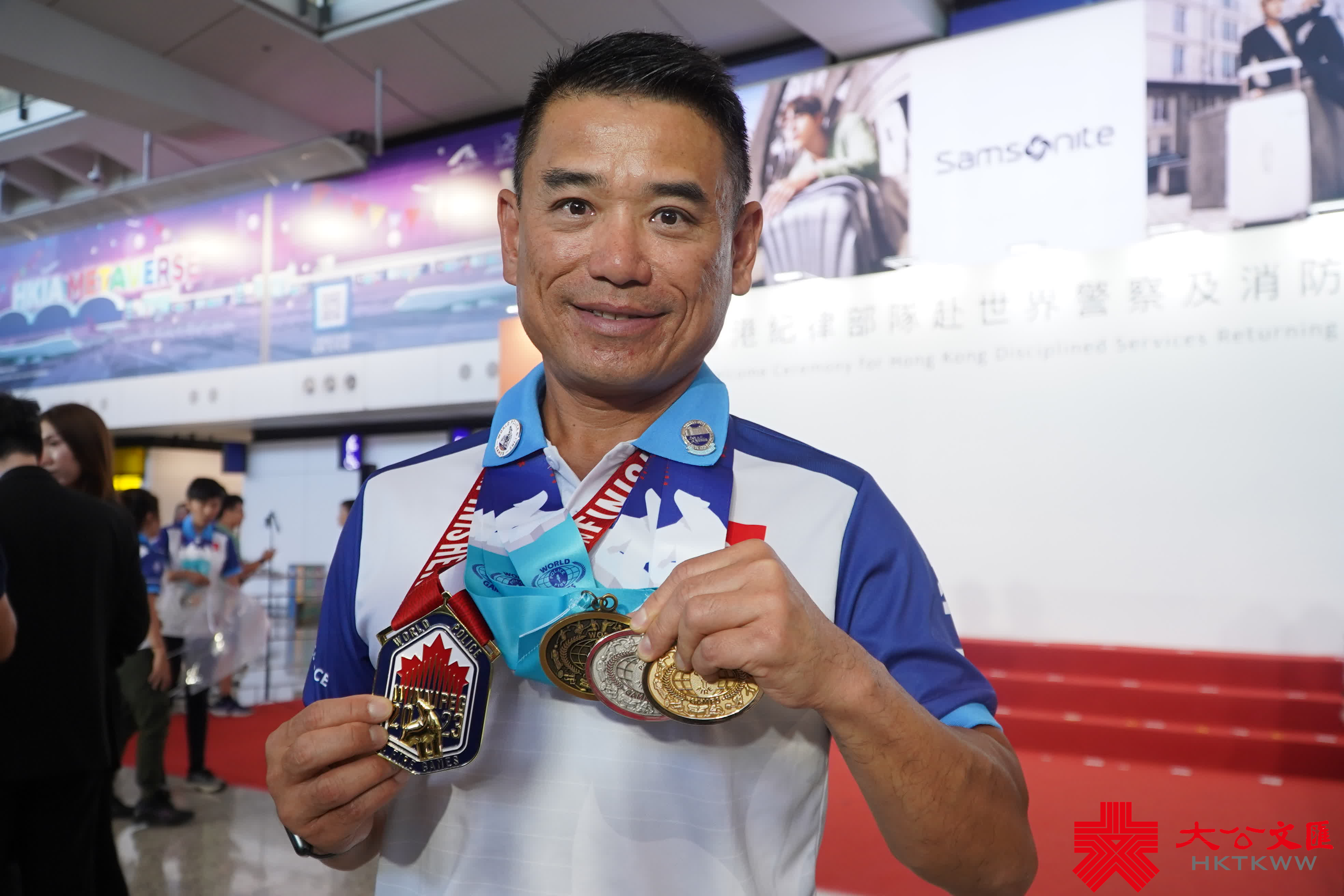 警隊人事服務及職員關係課總警司李仲華首次參加世警會,取得1金1銀1銅佳績,對本港紀律部隊在疫情後再參賽,與來自世界不同地方的選手共同競技感到高興。他透露,雖然平日都有訓練長跑,但知道有機會代表警隊參賽後,仍然在過去半年加強長跑和競走不同項目的訓練,希望提升能力,達到更高水平。李仲華坦言此行獲益良多,雖然他所在的田徑會24位同事年齡從21歲至50多歲,但大家相處融洽,且通過比賽增強對彼此的認識和了解,利於建立團隊精神,而正所謂「三人行,必有我師焉」,李Sir也從其他同事身上學到更多關於田徑的知識。此外,他特別提及運動精神也給警隊的工作帶來啟示,例如在日常訓練中亦講求紀律性,要堅持從不同方面提升自己水平等,與紀律部隊的工作是相輔相成的,警隊在日常工作中也需要通過不同方法提升效率,而警隊亦是一個團隊,團隊精神十分重要,要合力將整體表現做得更好。