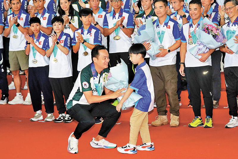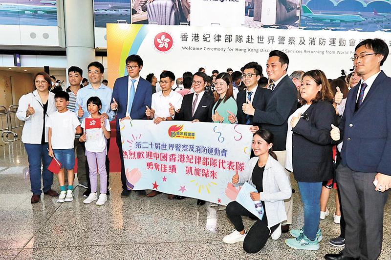(香港文匯報 記者 黃子晉)香港紀律部隊代表團在第二十屆世界警察及消防員運動會取得驕人成績,合共奪得275面獎牌,包括97金、90銀、88銅,成績是歷屆之冠。特區政府昨日在香港國際機場舉行儀式,迎接參賽人員凱旋歸來。特區政府政務司司長陳國基致辭時表示,一眾健兒在世界性賽事表現超卓絕非幸運或偶然,是努力加上毅力的成果,是香港人的驕傲,既為港爭光,更充分彰顯作為特區政府紀律部隊精銳幹練的專業表現。他批評在賽事期間,有反中亂港分子在網上號召反對特區警員入境加拿大,但參賽同事臨危不亂,沉着應對,秉持堅毅克制的專業精神,繼續在賽事中全力以赴,勇奪佳績,用實際行動向世界說好香港故事。他對此予以高度的肯定,又認為事件印證亂港勢力死心不息,特區政府定會貫徹有法必依、執法必嚴原則,堅定不移地保護好香港安全、國家安全。