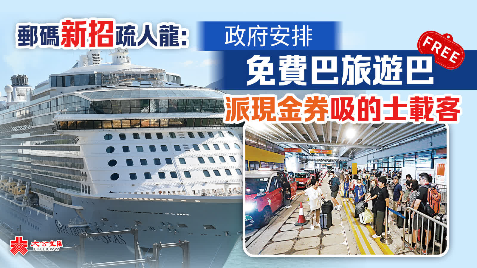 疫情前曾乘坐郵輪的港人葉女士說:「當年那次下船時,的士站『大排長龍』,當時決定乘搭專線小巴到附近的港鐵站,也需要等候至少半小時才有小巴。如今,這一次免費巴士增加,等巴士比等的士快很多。」