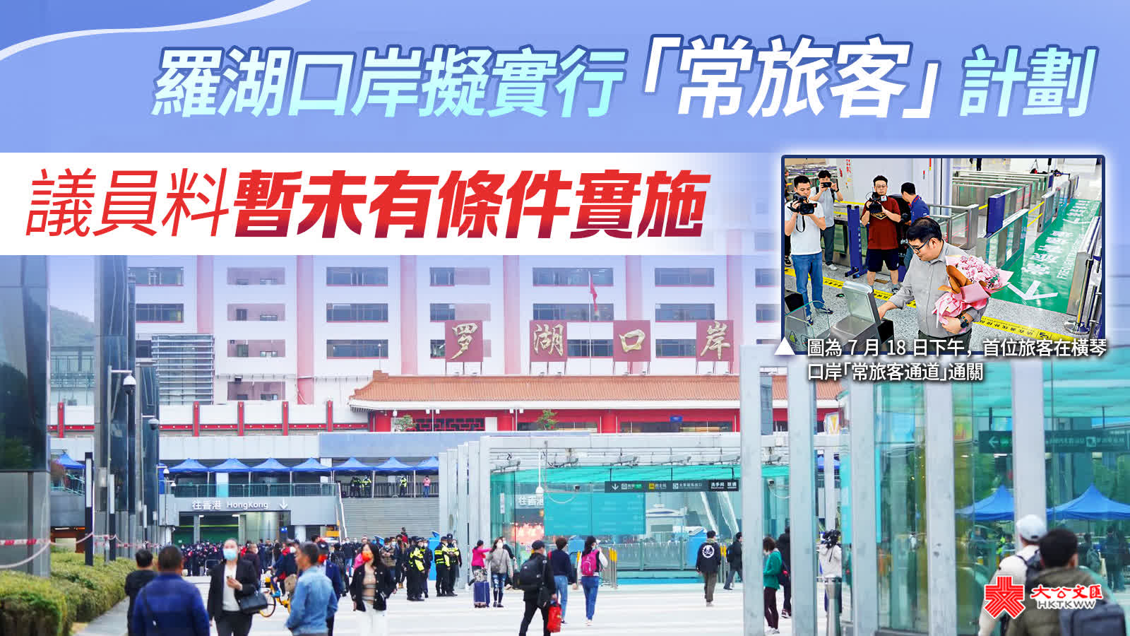 大公文匯全媒體報道,深圳市口岸辦日前指,羅湖口岸擬實行「常旅客」計劃,學生、商務人士、其他科技人員等特定人群,只要備案為「常旅客」,通關查驗會更加便捷。立法會議員黃國今日(10日)在電台節目中表示,相關措施跟硬件有關,暫時未有條件實施,要待重建或改造口岸設施才能實行。
