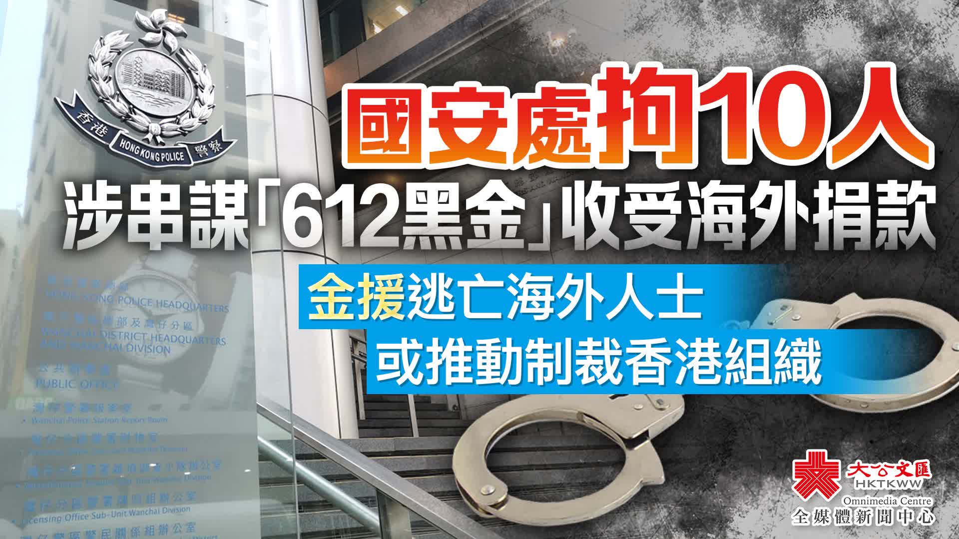 警方調查顯示,被捕人涉嫌串謀有「黑暴基金」之稱的所謂「612人道支援基金」,接受不同海外組織的捐款,並向一些支援逃亡海外人士或推動制裁香港的組織提供金錢資助。