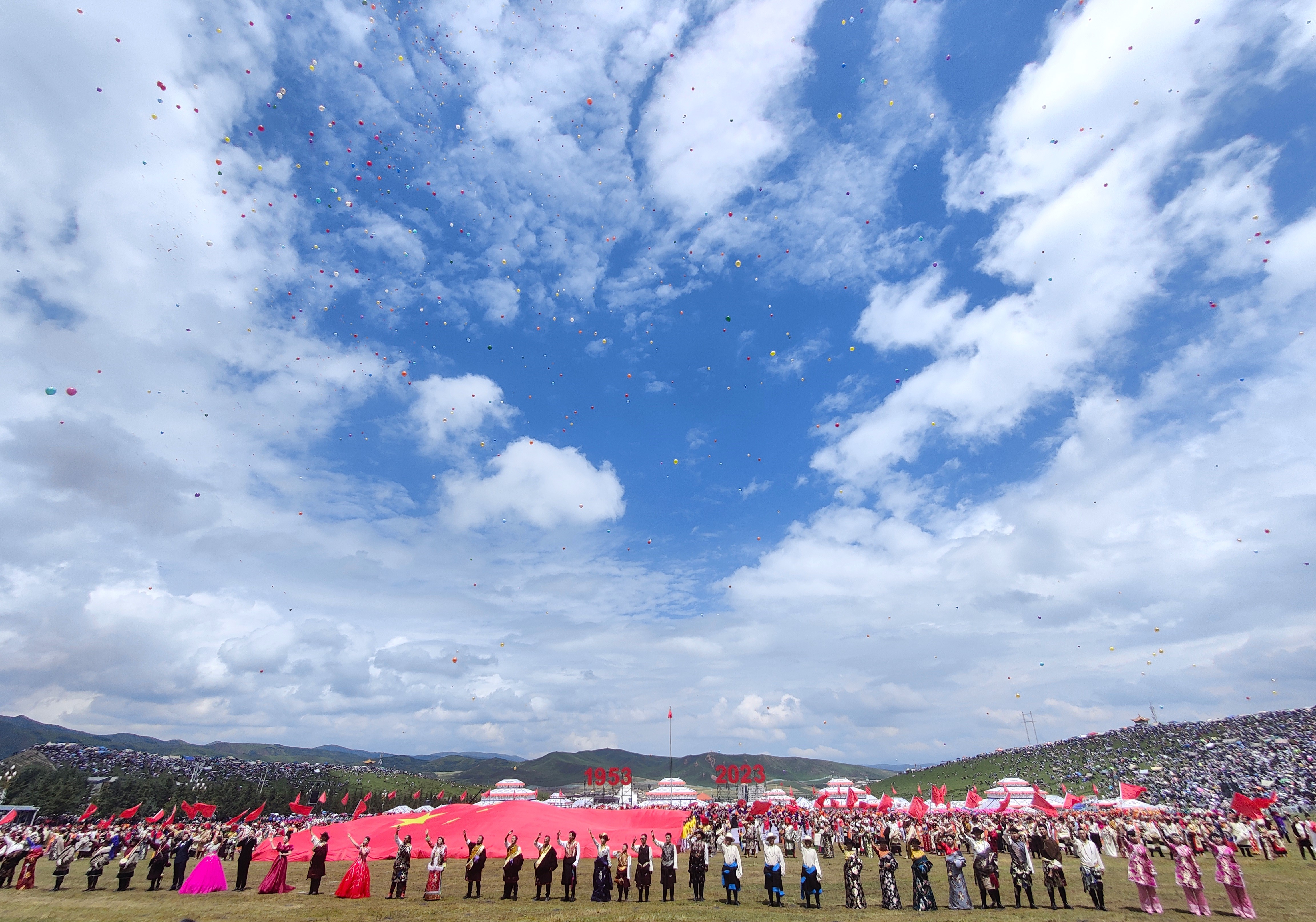 (大公文匯網記者 郭濤 甘肅報道)今日(8月10日),甘肅省甘南藏族自治州成立70周年慶祝活動在風景如畫的合作當周草原舉行。全國人大常委會、國務院、甘肅省委、甘肅省人大、甘肅省政府、 甘肅省政協和全國各地市政府、有關機構向當地發來賀電賀信。當地群眾身着節日盛裝,舉行了精彩紛呈的文藝演出。
