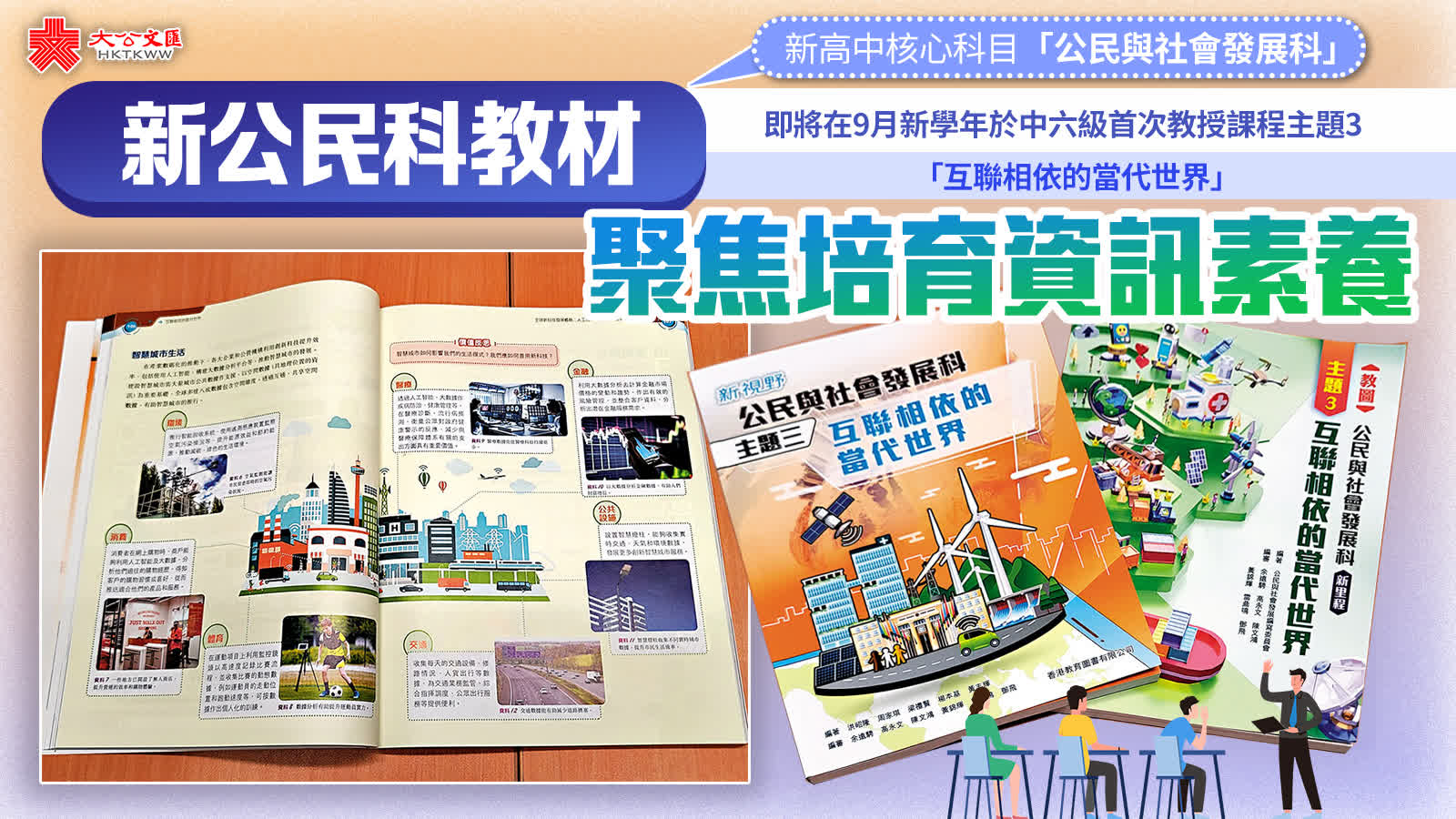 公民科主題3緊貼全球最新發展趨勢,聚焦教授「經濟全球化」、「科技發展與資訊素養」、「可持續發展」及「公共衞生與人類健康」等4個課題,坊間已有約10套課本可供選購。香港文匯報記者檢視了其中兩本由本港多位大學學者、專家及立法會議員編審的課本。