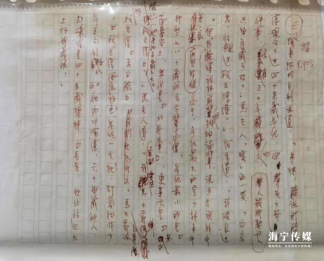 在海寧市檔案館裏,就有一份珍貴的館藏檔案——金庸武俠小說《天龍八部》中一頁珍貴的手稿。