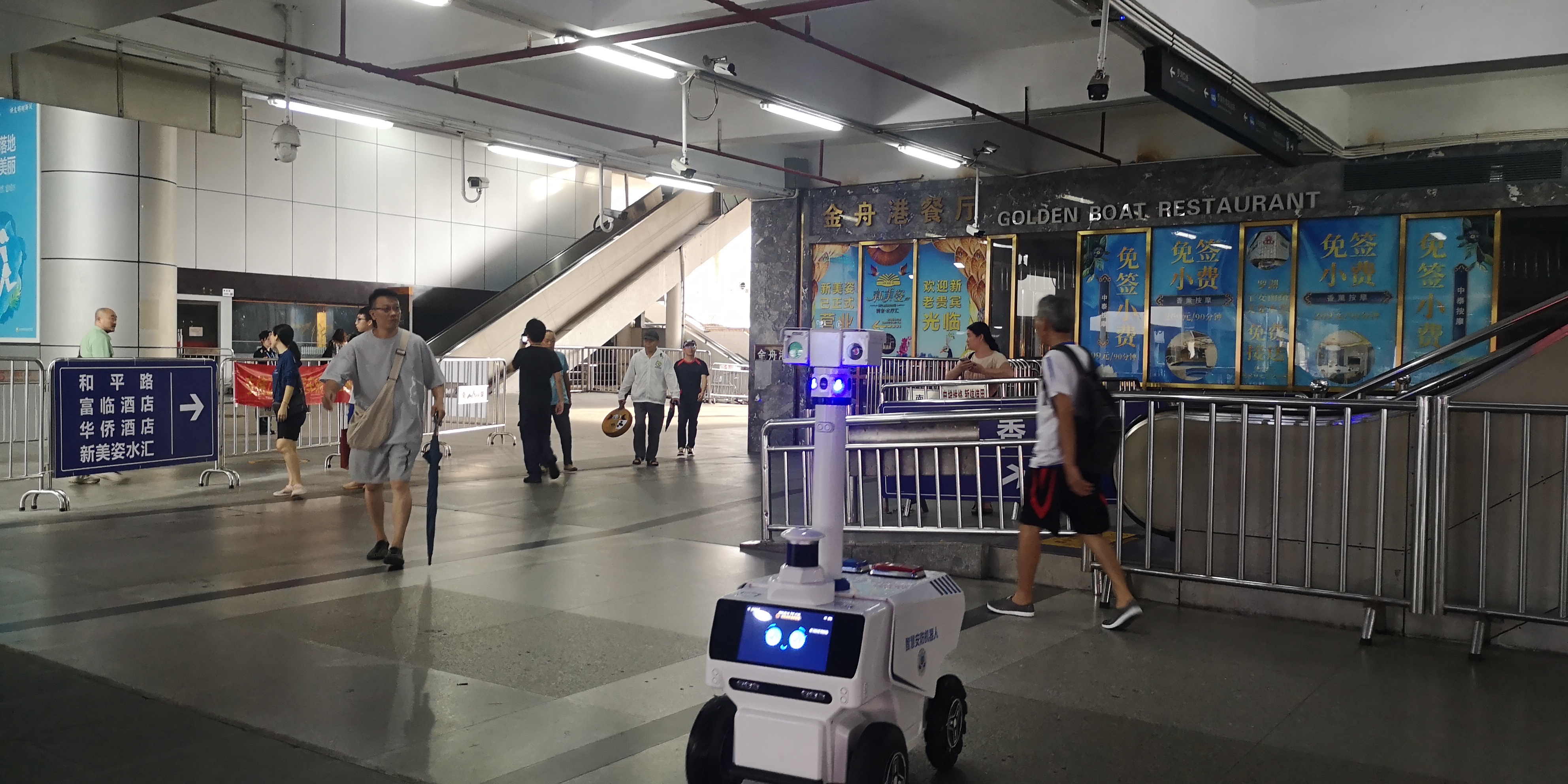 「禁止逆行」、「口岸區域禁止任何人以任何形式攬客」......在羅湖口岸1號門外圍,類似的標語隨處可見,十幾名工作人員在現場巡查,並為剛剛入境深圳的港人耐心解答相關問題。值得一提的是,一名智能機械人在相應的區域進行移動播報,提醒市民搭乘正規運營車輛。