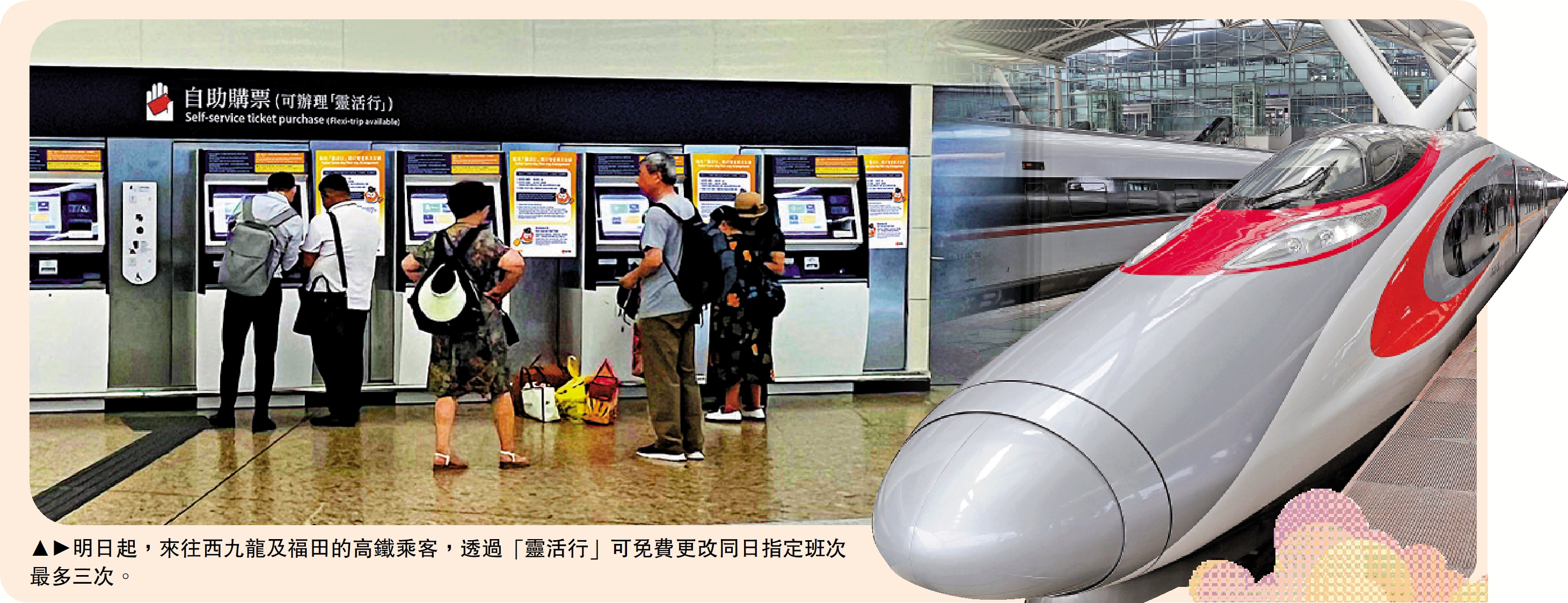 (大公報記者 易曉彤)港鐵明日(14日)起推出「靈活行」,適用於往返香港西九龍站與福田站的38個班次,若乘客趕不及搭乘已購買的原定班次,或想臨時改變行程,在原來車次開出前45分鐘至開車後一小時內,可直接使用「靈活行」免費更改同日指定車次最多三次,令短途乘客可以更有彈性地安排自己的行程。