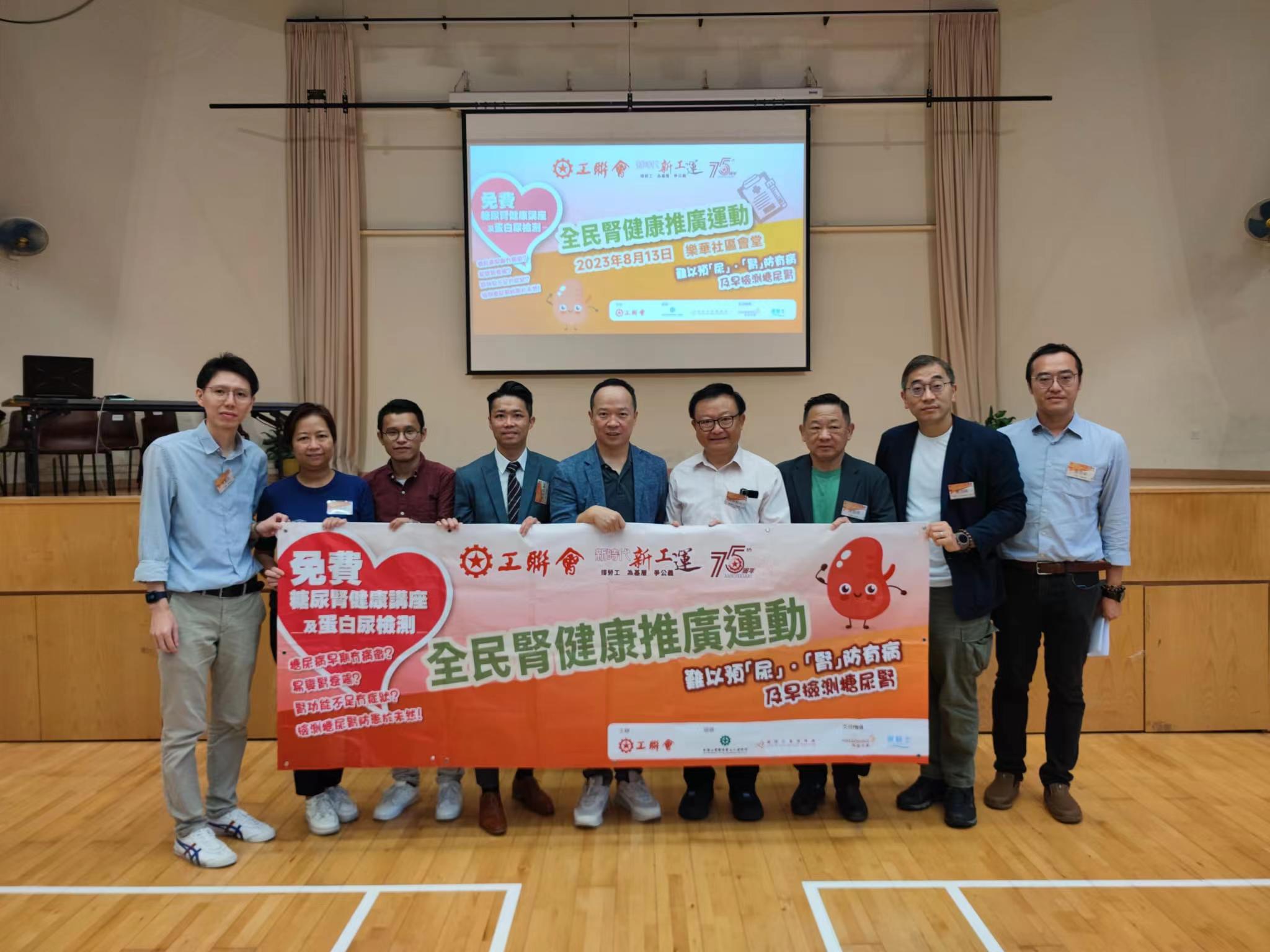 工聯會於6至8月期間舉辦「全港性糖尿腎檢查計劃」,在阿斯利康(香港)有限公司、工聯會工人醫療所、樂群社會服務處、社企「銀騎士」、工聯會地區服務處等多方協助下,在全港各區進行檢測,讓市民了解自己腎臟的情況。同時將安排健康講座,由醫生、專業醫護人員等,向參加者分享更多腎健康的知識。