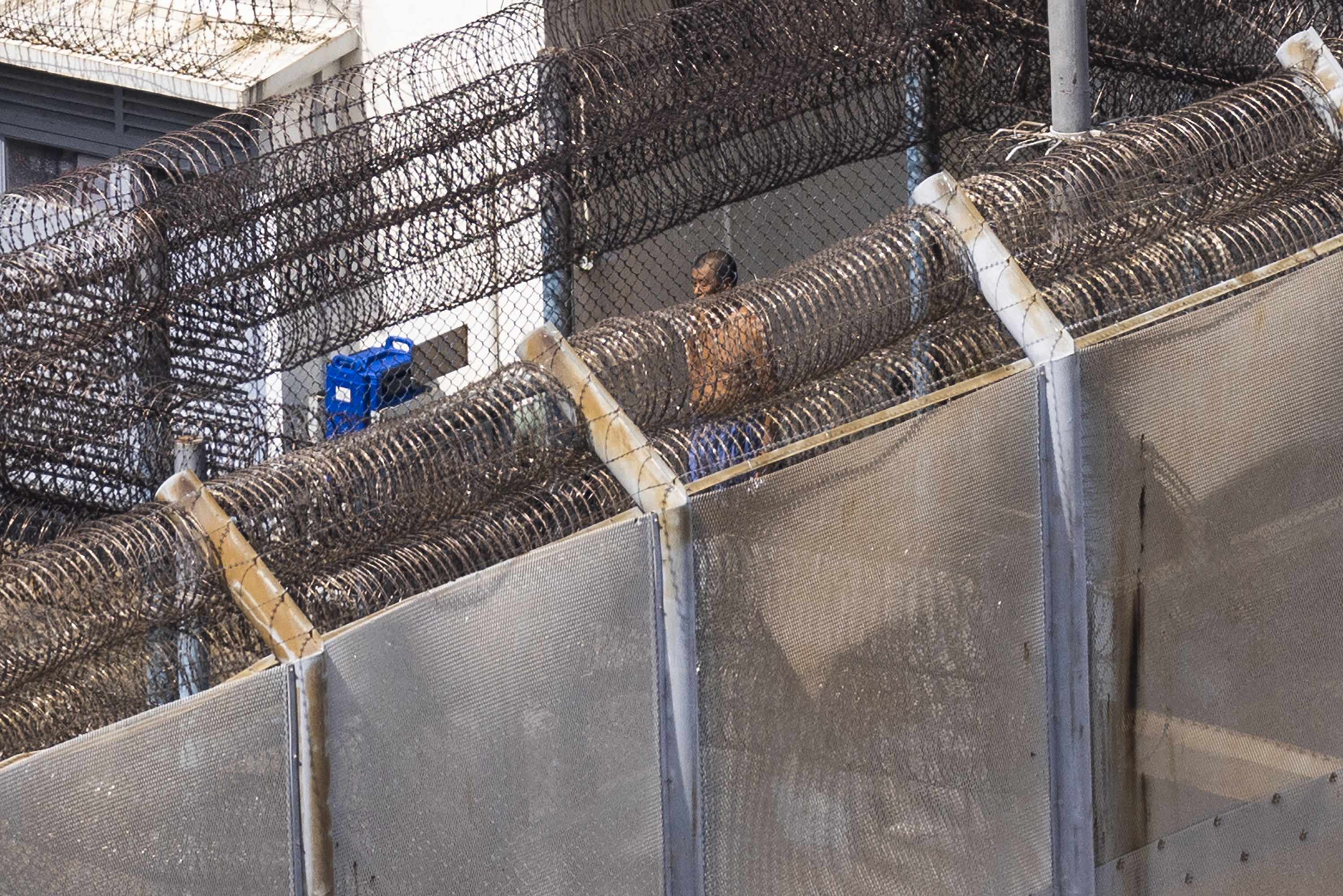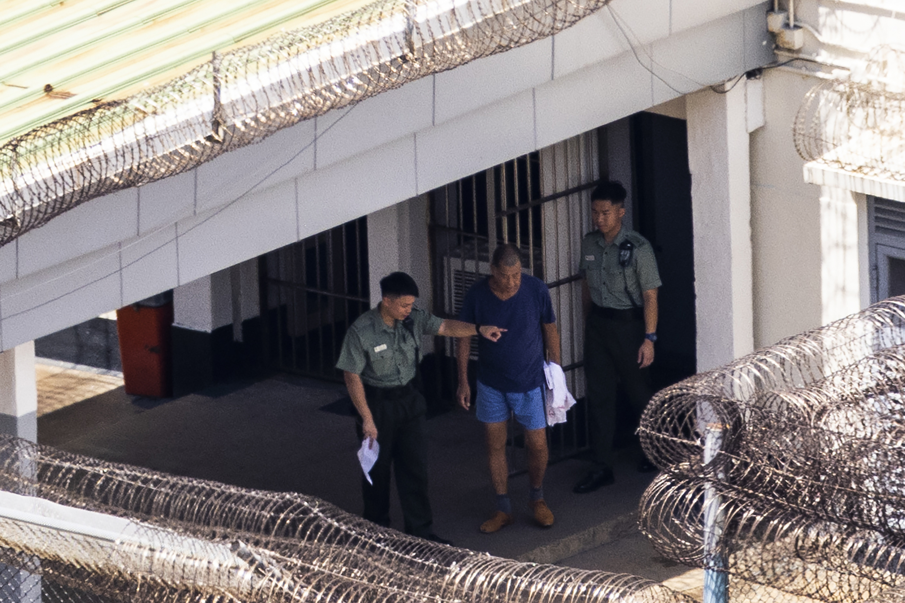 大公文匯全媒體報道,官司纏身的亂港黑手、壹傳媒創辦人黎智英,因身涉非法集結及欺詐等多罪,目前正於赤柱監獄服刑。近日,《美聯社》拍得多張黎智英在獄中的照片,其中一張遠距離拍攝到他在囚室外的散步情況。不知道是否近日天氣極端酷熱,加上監獄沒有冷氣,照片可見,黎智英身穿藍色短褲,脫去上衣,半身赤祼「頭耷耷」散步。