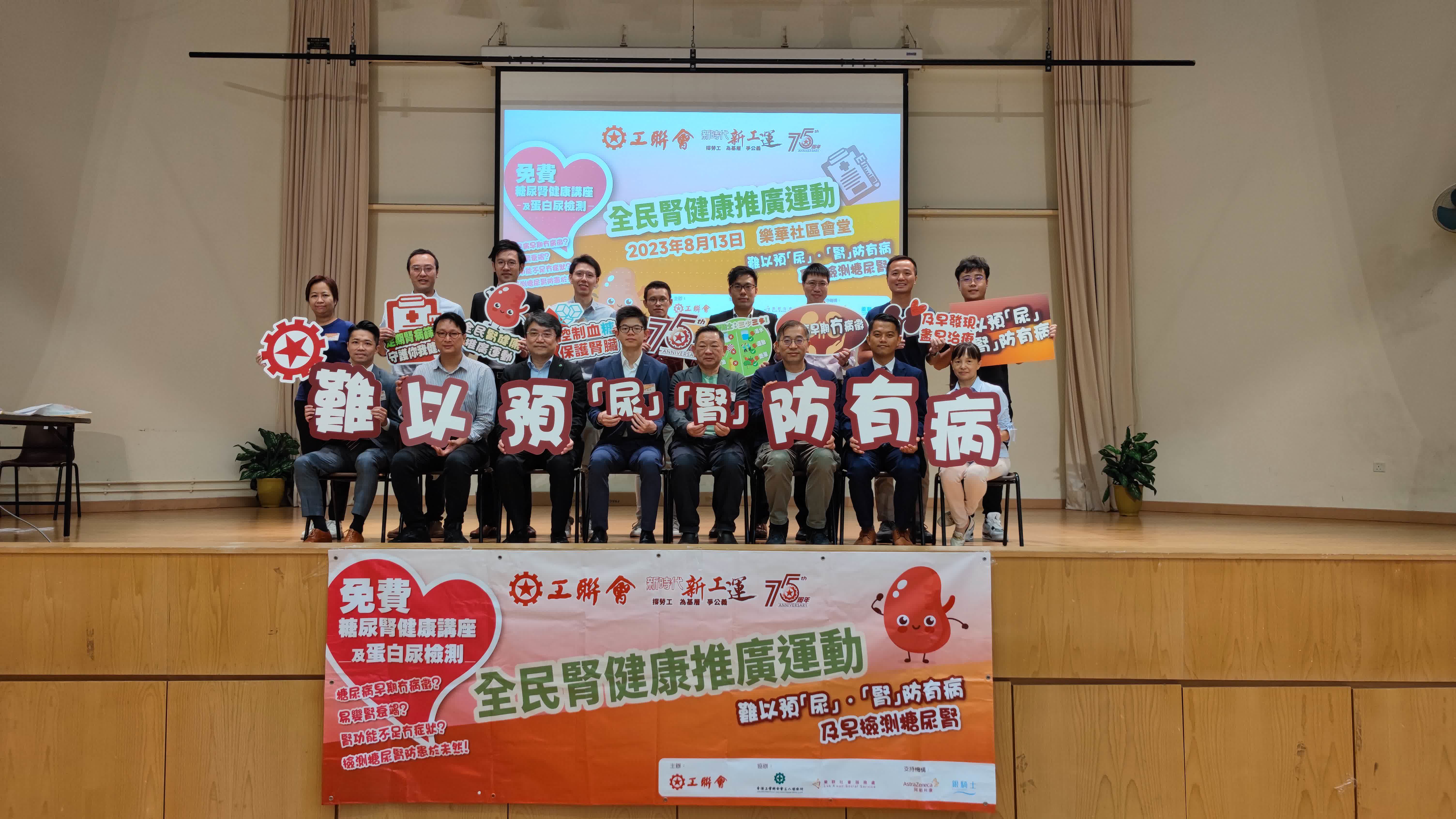 工聯會於6至8月期間舉辦「全港性糖尿腎檢查計劃」,在阿斯利康(香港)有限公司、工聯會工人醫療所、樂群社會服務處、社企「銀騎士」、工聯會地區服務處等多方協助下,在全港各區進行檢測,讓市民了解自己腎臟的情況。同時將安排健康講座,由醫生、專業醫護人員等,向參加者分享更多腎健康的知識。