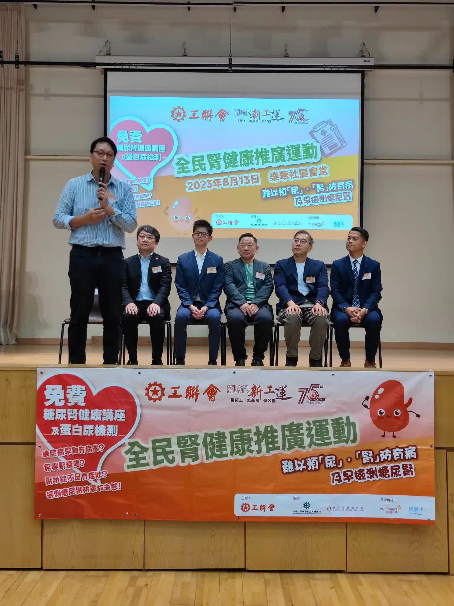 工聯會觀塘地區服務處主任、觀塘區議員簡銘東表示,社會上很多人士都為工作忙碌,往往忽視自己的健康需要,特別是中年至長者,當身體出現病徵時,病情已很嚴重並難以逆轉,沉重的醫療開支亦為家庭帶來經濟壓力。工聯會一直關注「打工仔」的健康情況,特別今年是工聯會成立75周年,藉着推出這項腎健康篩查計劃,呼籲市民保持健康生活方式,以及要早預防慢性疾病。