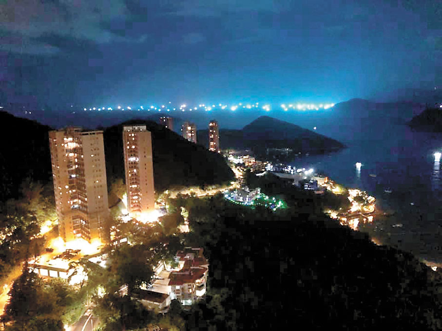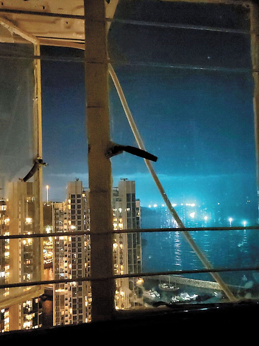 近月晚上香港多區海中心都出現大片強光,照射到岸邊,甚至樓上單位。家住鴨脷洲利東邨的劉先生深受其害,他近日接受香港文匯報訪問時表示,由於住所的臥室窗戶向南,直望海中心就會見到海面泛現藍的、白的強光。