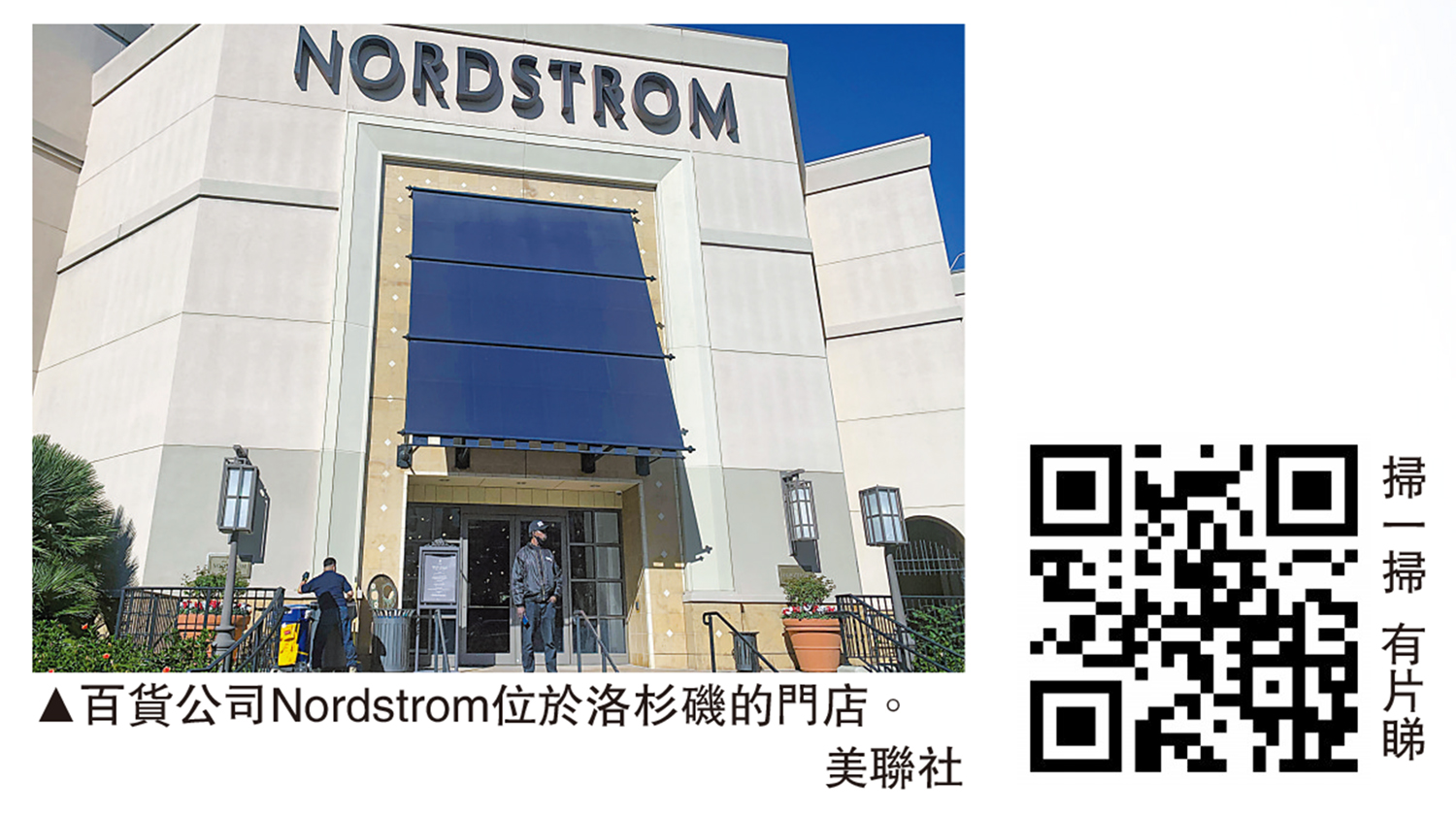 •加州洛杉磯著名百貨公司Nordstrom遭約50名蒙面暴徒搶劫,據稱他們搶走了價值約10萬美元的貨品。