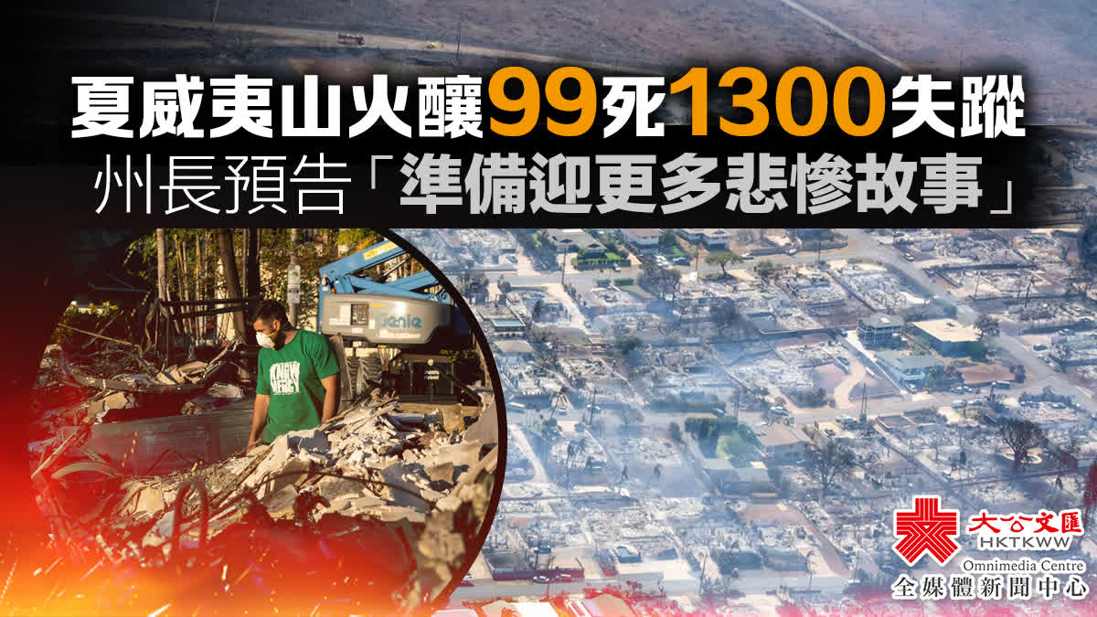 截至當地時間14日下午,夏威夷官方確認,已有99人在毛伊島大火中遇難。夏威夷州長格林當天在接受採訪時表示,死亡人數仍將大幅上升,可能在未來十天內翻一番。格林還介紹,隨着搜救工作的進行和手機信號服務的恢復,失蹤人數已經從2000多人降至約1300人。