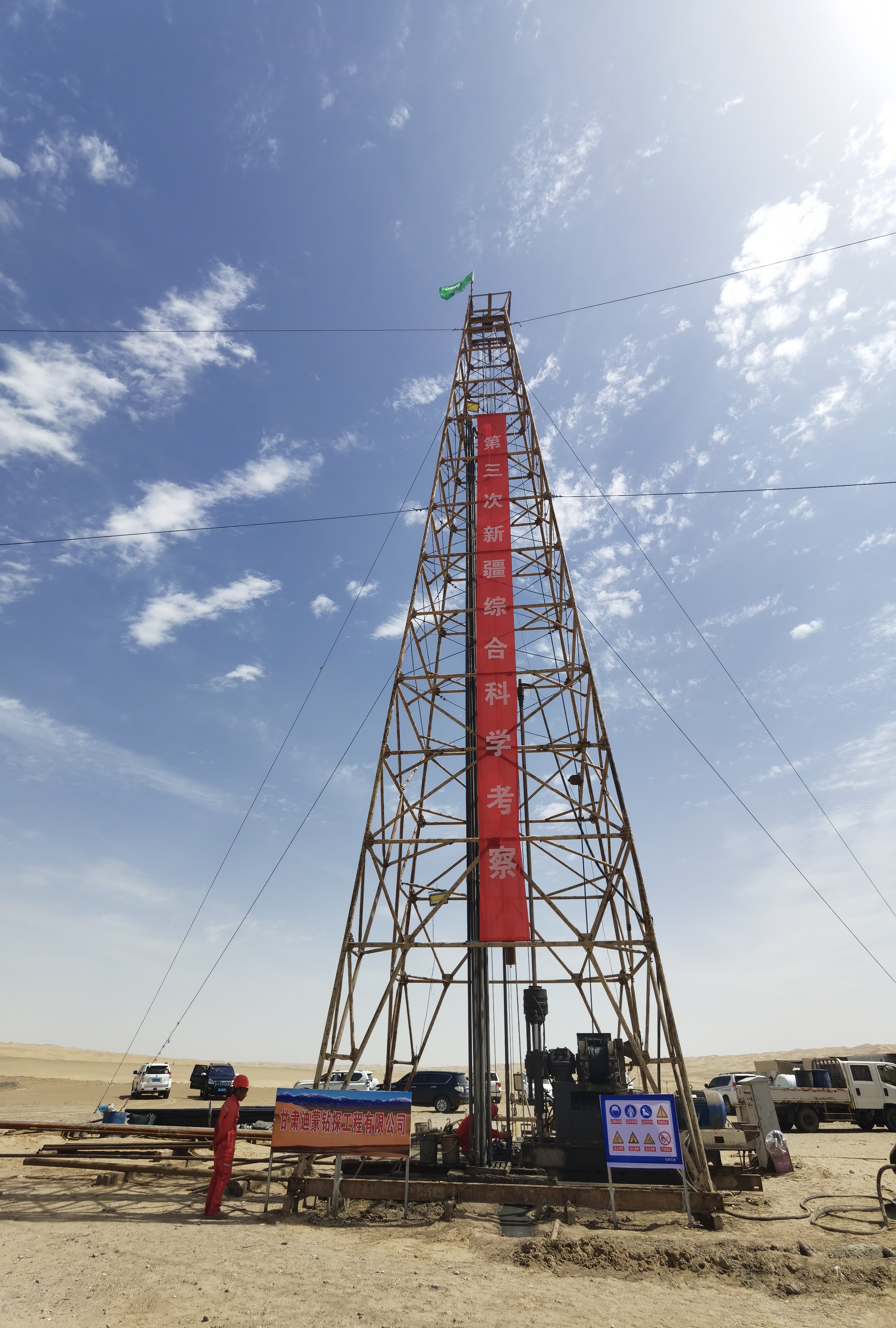 穿行於茫茫漠海,在沙漠公路驅車500公里,記者來到塔克拉瑪干沙漠腹地,眼前矗立着高達數十米的鑽架,轟鳴的鑽機正鑽取地下接近千米的岩芯樣本,不遠處無人機在高空盤旋,拍攝沙丘形態,探地雷達正測量沙丘地下層理結構,高精度的風蝕氣象站在自動收集數據……這是第三次新疆綜合科學考察的一處野外現場。一位科技人員告訴記者,「立體的高科技手段令第三次科考更加高效,與過去科考相比已不可同日而語。」