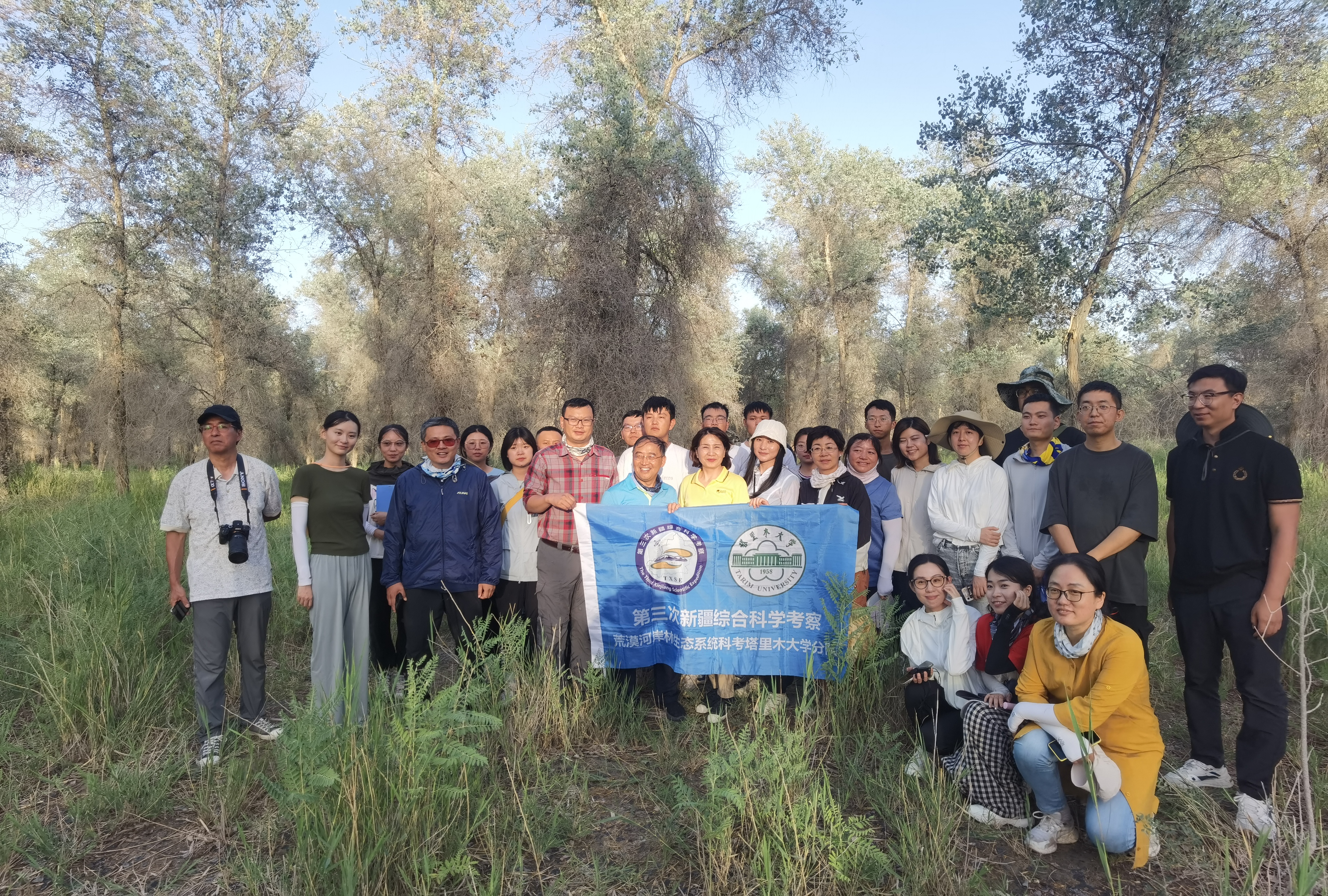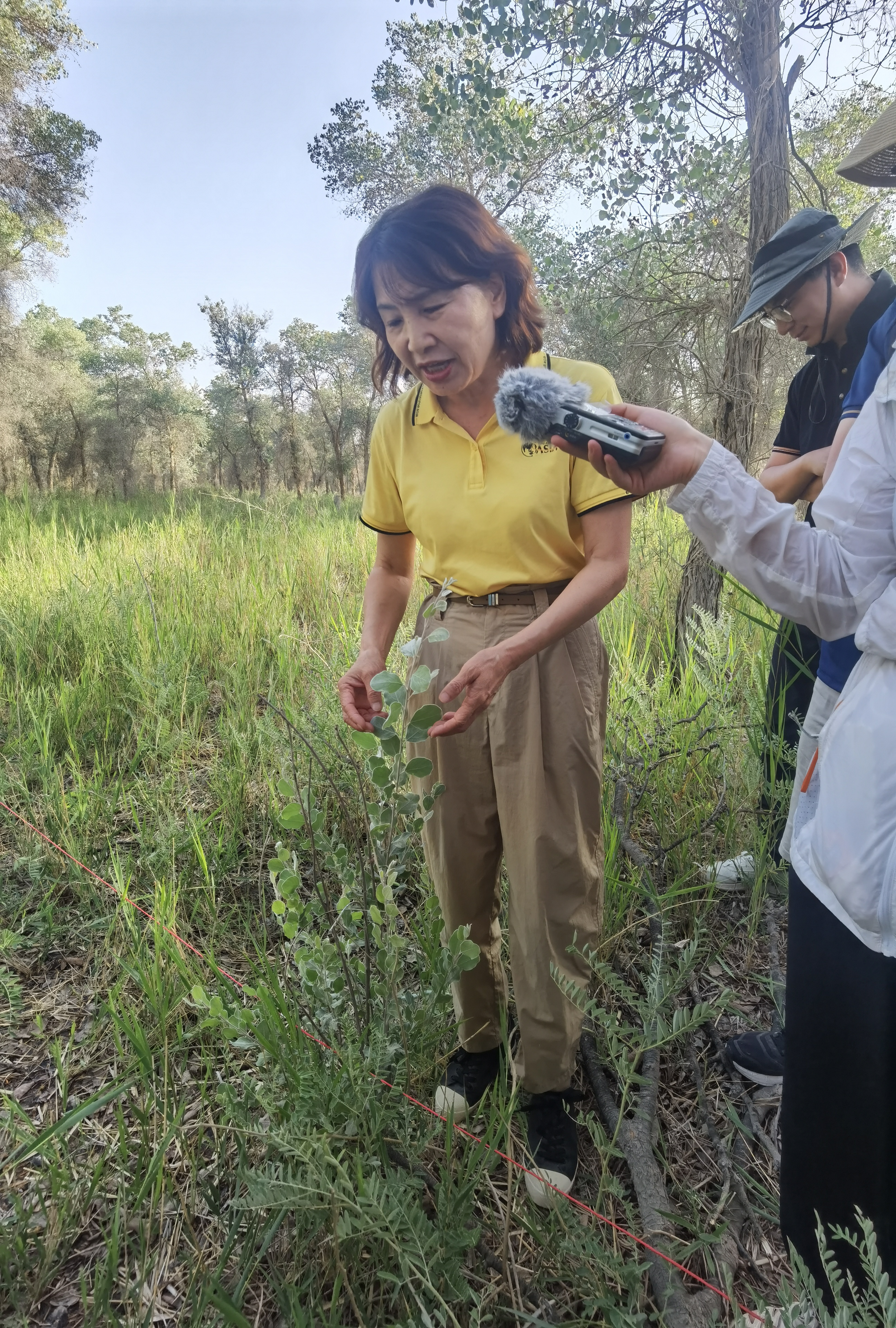 在阿拉爾市附近的一片胡楊林裏,新疆塔里木大學生命科學與技術學院教授李志軍正帶領着她的學生們,以50米ⅹ50米的範圍為樣方單位,收集胡楊林等物種信息。這是第三次新疆科考的專題之一,旨在了解氣候變化和人類活動對塔河流域生態系統的影響,考察胡楊林群落的時空變化規律以及健康狀況。他們已經在南疆地區完成了207個類似樣方的調查,未來還要推進200個。