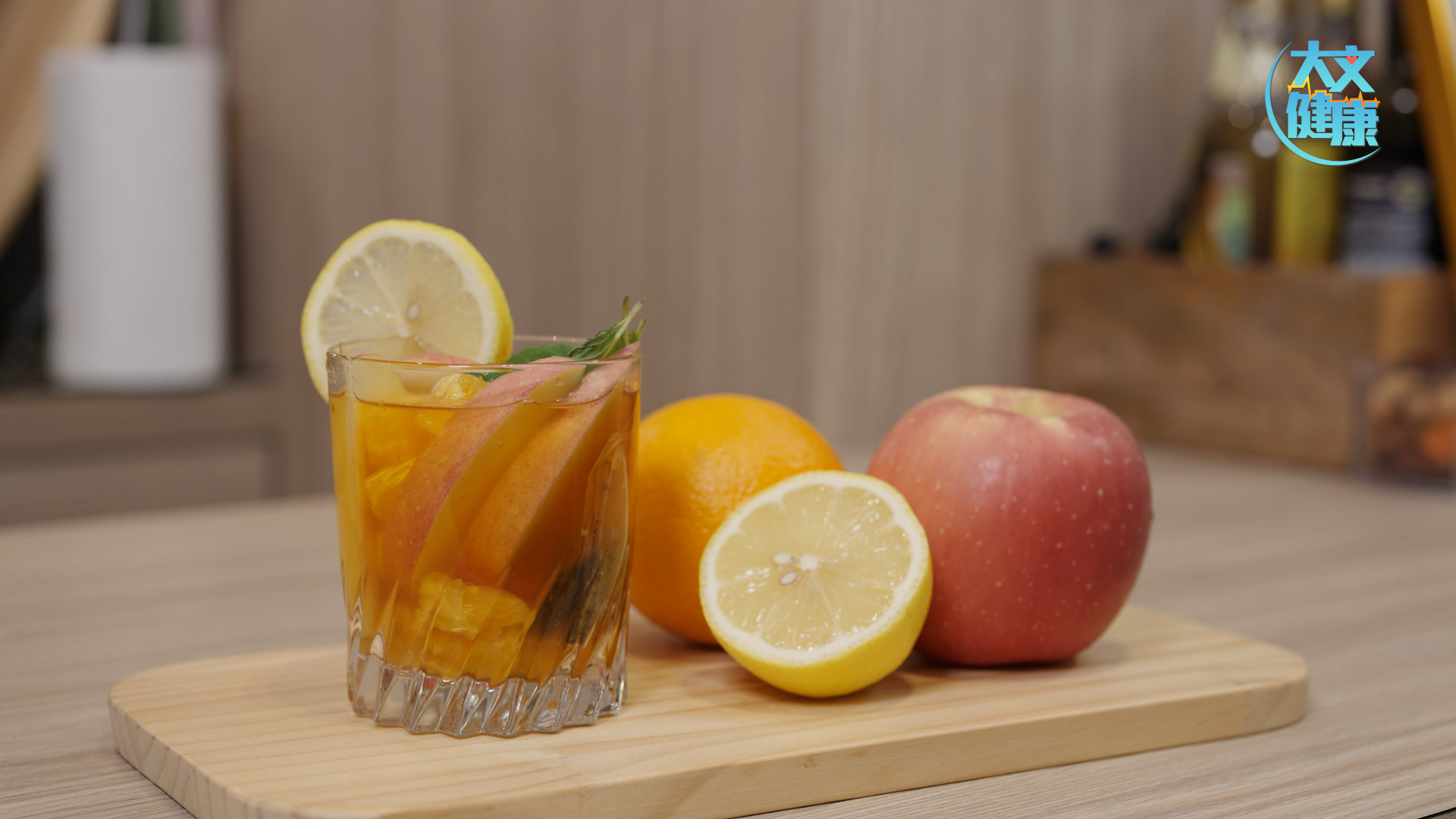 蘋果、橙檸檬三種水果的水分含量高,可幫助身體補充水分。而且它們都含有豐富的維生素C和膳食纖維,維生素C可以增強免疫系統,膳食纖維可以促進腸道蠕動,減輕便秘的問題。薄荷葉可以讓整杯水果茶的味道更加清新,達到消暑的效果。