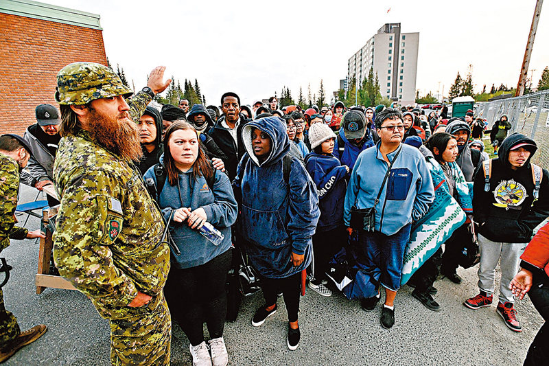 西北地區政府周二宣布進入緊急狀態,然後立即部署疏散行動。政府公布約有1,500名居民在周四獲安排搭機離開黃刀鎮,天氣惡劣導致部分航班延誤,首班飛機直至上午11時才起飛。到周五,政府將安排更多客機接走居民。多間航空公司將會配合當局安排,並且承諾增派班機到黃刀鎮。政府呼籲民眾帶備食水和食物到機場,因為他們可能要等候一段長時間才能登機。