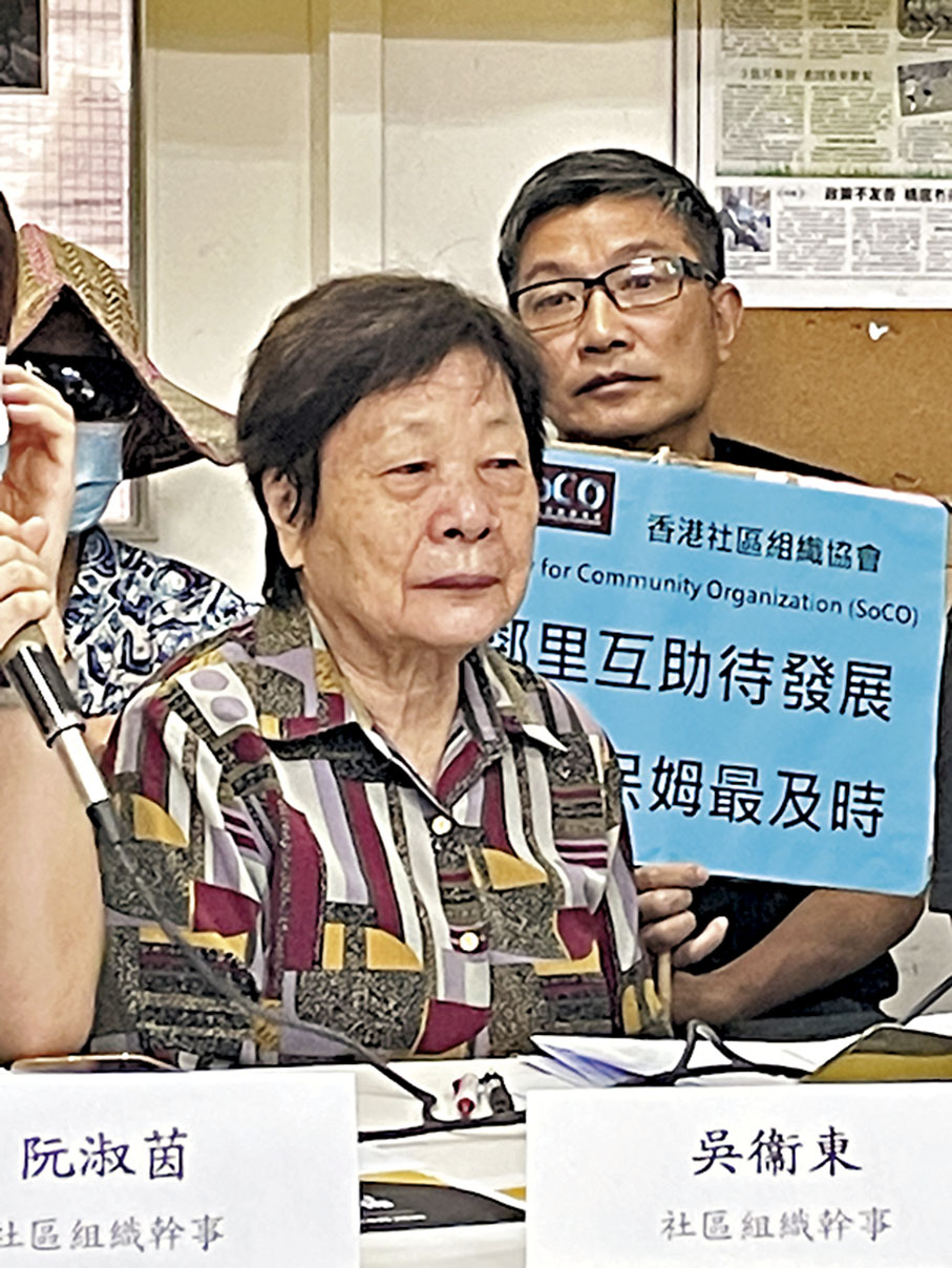 現年68歲的關婆婆一直獨自照顧73歲患有長期病症的丈夫,她昨日於記者會上慨嘆,去年疫情時,她和丈夫都確診兼感到惶恐不安,卻不知可從哪裏買藥或去接種疫苗,「我們都很害怕,也不敢出門,只能困在家裏。」