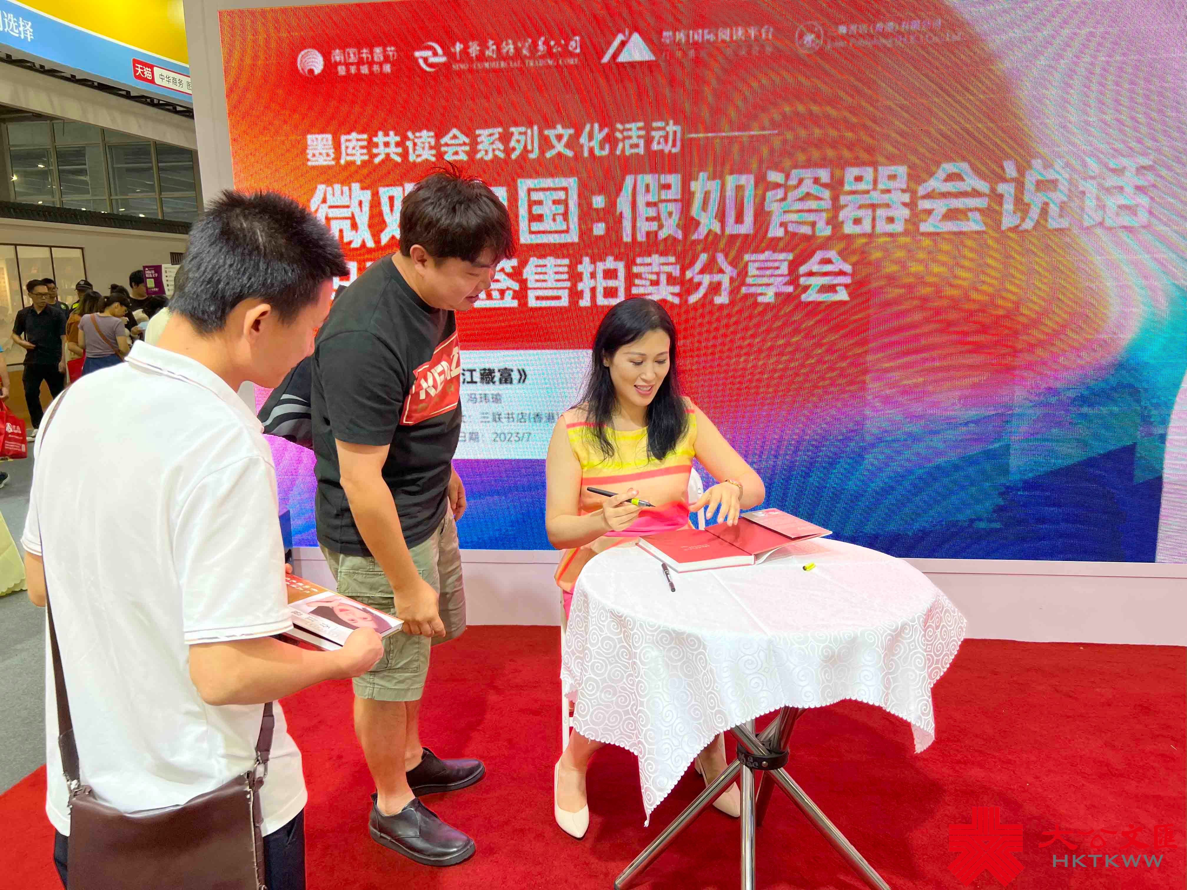 在本屆南國書香節期間,「微觀中國:假如瓷器會說話-簽售拍賣分享會」在港澳台館舉辦,廣州收藏家、作家馮瑋瑜現場介紹了自己拍下藏品清代康熙黃釉錐拱纏枝蓮紋梅瓶的經歷,她在新書《香江藏富》中也多次提到在香港各大拍賣會參加文物競拍的故事。「我的新書也有幸在上個月的香港書展上籤售,受到不少香港讀者的關注。」她表示,香港作為國際化都市,拍賣市場在亞洲處於核心地位,「自改革開放以來,香港的藝術品拍賣市場就承接了不少內地的藝術品拍賣,香港故宮文化博物館的開放進一步豐富了香港的藝術品市場氛圍,相信在香港與內地文化交流日益密切的推動下,大灣區乃至全國的藝術品市場都會蓬勃發展。」